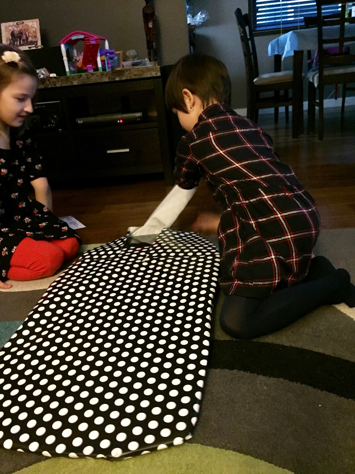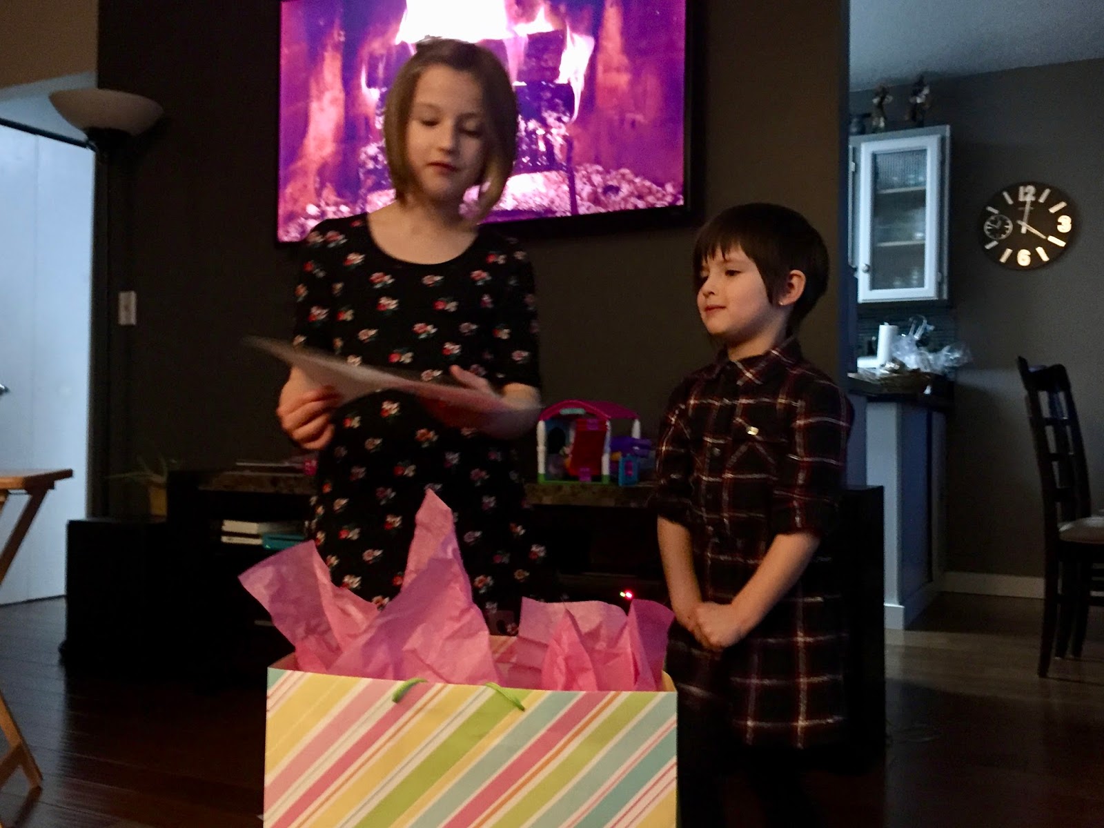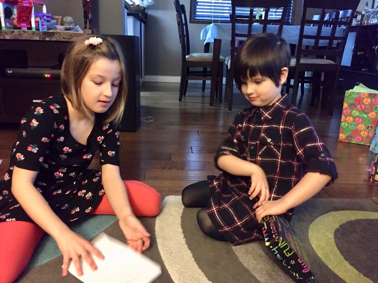 Later, SBean picked a gift and began opening it and looked up and said, “uh-oh Mommy I’m sorry.” She tore it open and it was a huge freaking box of SHOPKINS! I started looking around and saw Ninja sheepishly lower his gaze! WTF? He was like,”What? You bought all the presents I wanted to buy 1 too!”