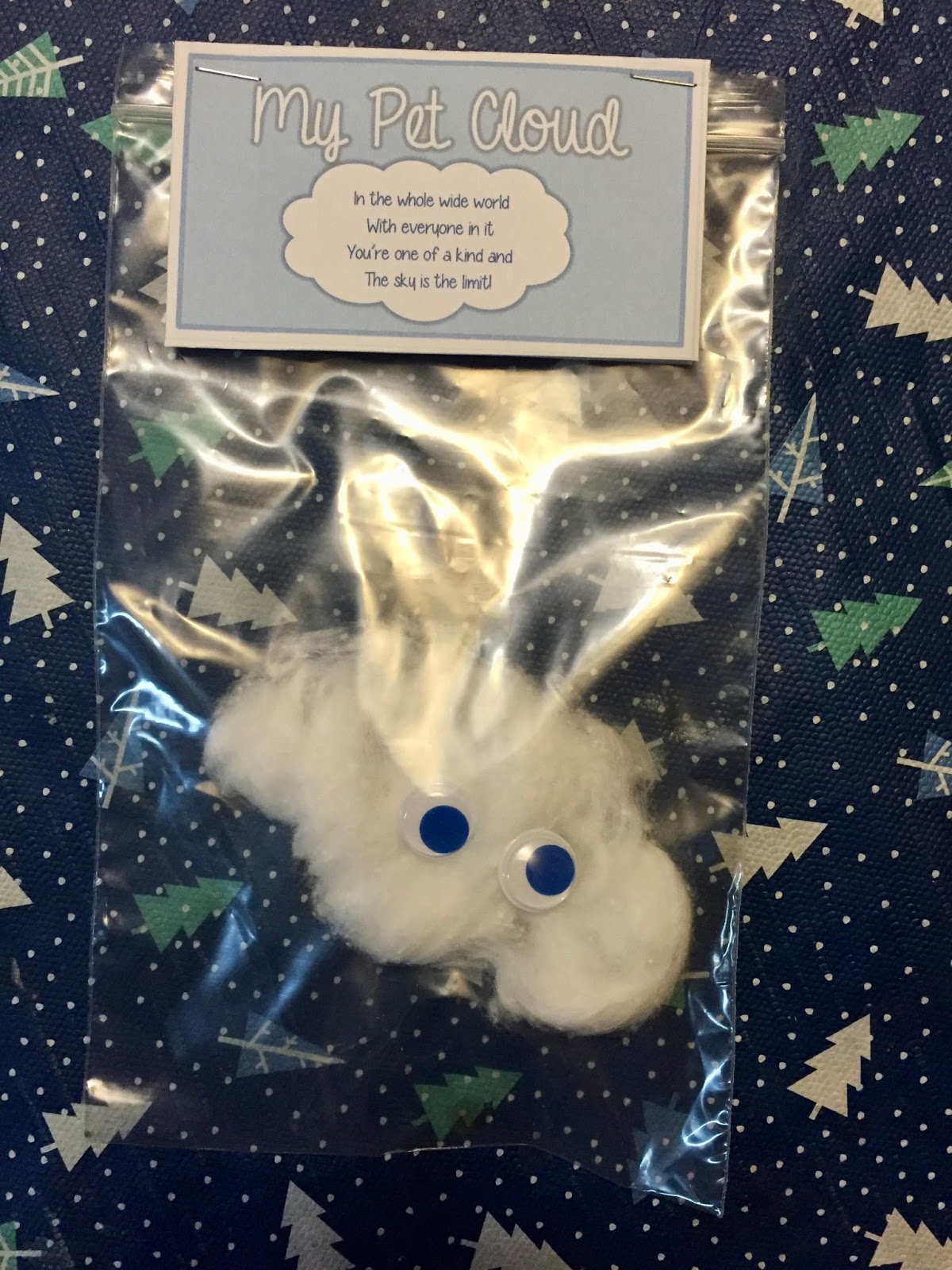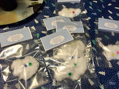 We also made the goody bags. I pretty much did the same bags as I did for HBear when she had her bowling party in preschool. We made Pet Clouds!