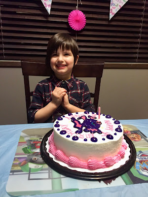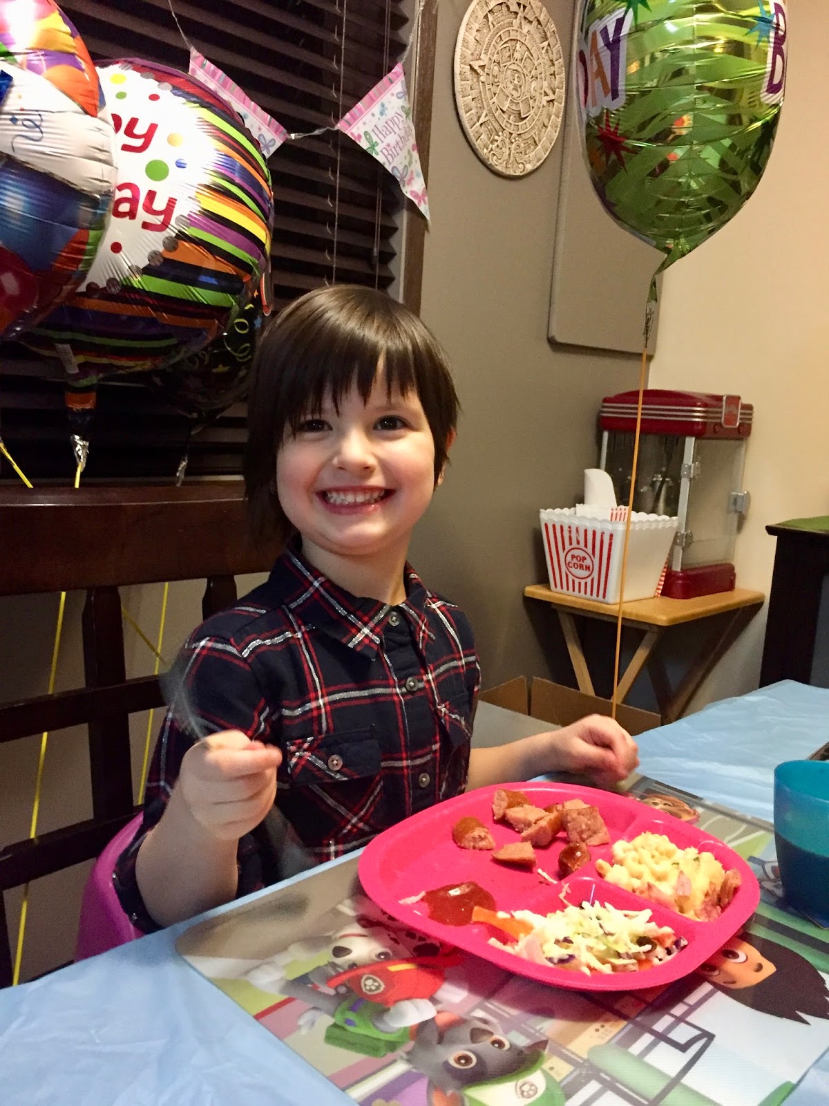 For dinner SBean asked for Kube (sausage), macaroni & cheese and coleslaw… with raisins! I would NOT feed everyone KD so I made homemade mac & cheese. YUM! The Girl’s hated it. She picked a pink ice cream cake for her real birthday.
