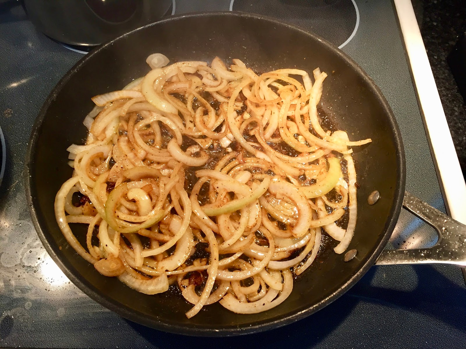 To the same skillet add butter and melt. Add onion and cook until onion is soft and translucent.
