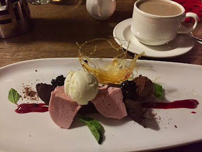 It was a 3 course dinner, Caesar Salad, NY Striploin and then flourless chocolate cake with vanilla bean ice cream and cherry mousse. It was ah-mazing! We bought Dad a bottle of wine and asked it to be placed at his table, to thank him for watching the Girls. It was so nice to spend 2 hours having a nice meal with Ninja. We haven’t done that on New Year’s Eve in 10 years!