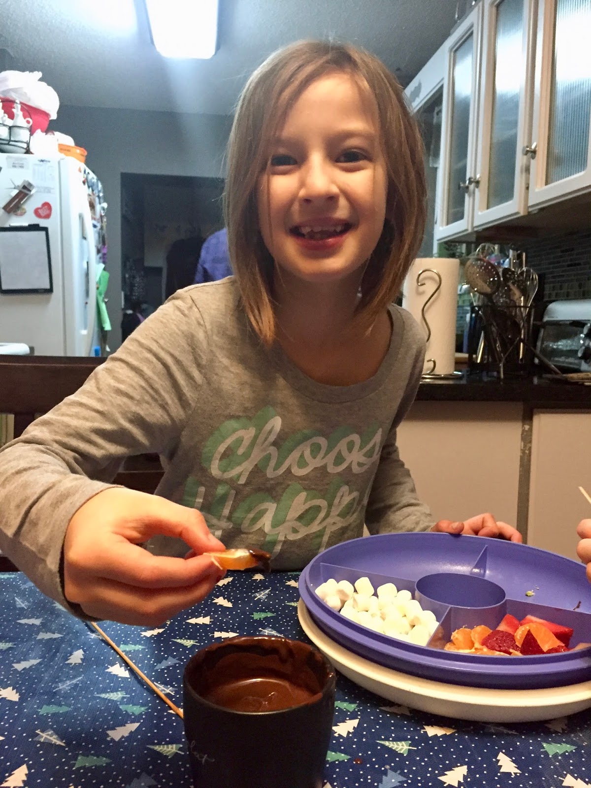 When we got home I brought out a little Belgian chocolate Fondue from my favourite Epicure Rep. The Girls LOVED it!