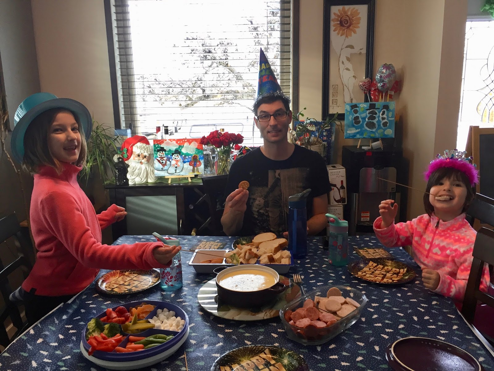 After a hot tub in the lightly falling snow, we danced to Dick Clark’s Rockin’ New Year’s Eve and popped our confetti crackers. We did the Beat Bugs Countdown on Netflix and the Girl’s were in bed by 9 and we followed shortly after. The whole house was snoring by 11pm 😳 😂!