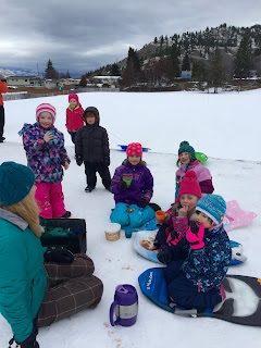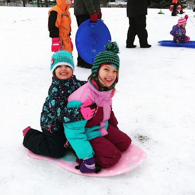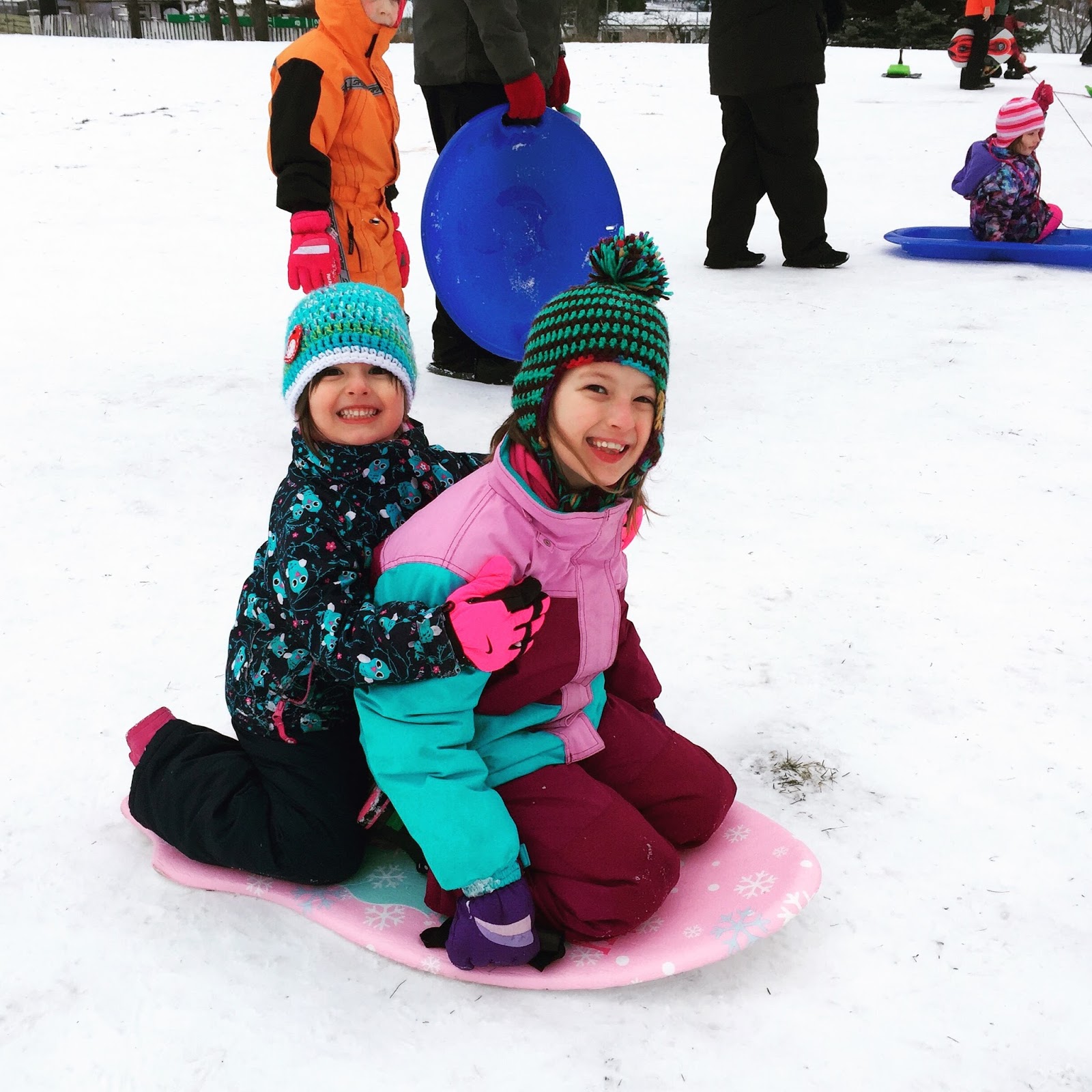 I took the Girls sledding at the school. We met HBear’s KISUBesty and her Mom and Sis. What a fun morning! SBean loved sledding! She had NO fear. On her second “run” she insisted on going over the “jump”. We ended our morning with hot chocolate and gingerbread men.