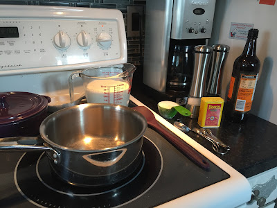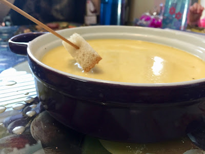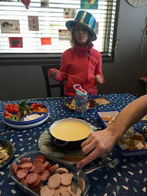 When we got home we had lunch. Actually SBesty gave be a huge brick of extra sharp cheddar cheese and I used it to make an super good cheese fondue. HBear loved it! It was so good!