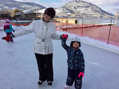 After building the Popstar Stage, we headed out to the Lakeside for a little skate. Ninja bought new skates on Boxing Day and we picked HBear up a pair second hand while we were in Kelowna the other day. It was a bit chilly, the wind was pretty cold compared to what we are used to. It was so much fun! HBear wasn’t a big fan of skating the first 2 times we put her in lessons so we let it go. With SBean starting her lessons next week we thought we would give it another try. She was great! The ice is very small but it is a super pretty location right on the beach. It would be nice to go in the evening under the lights.