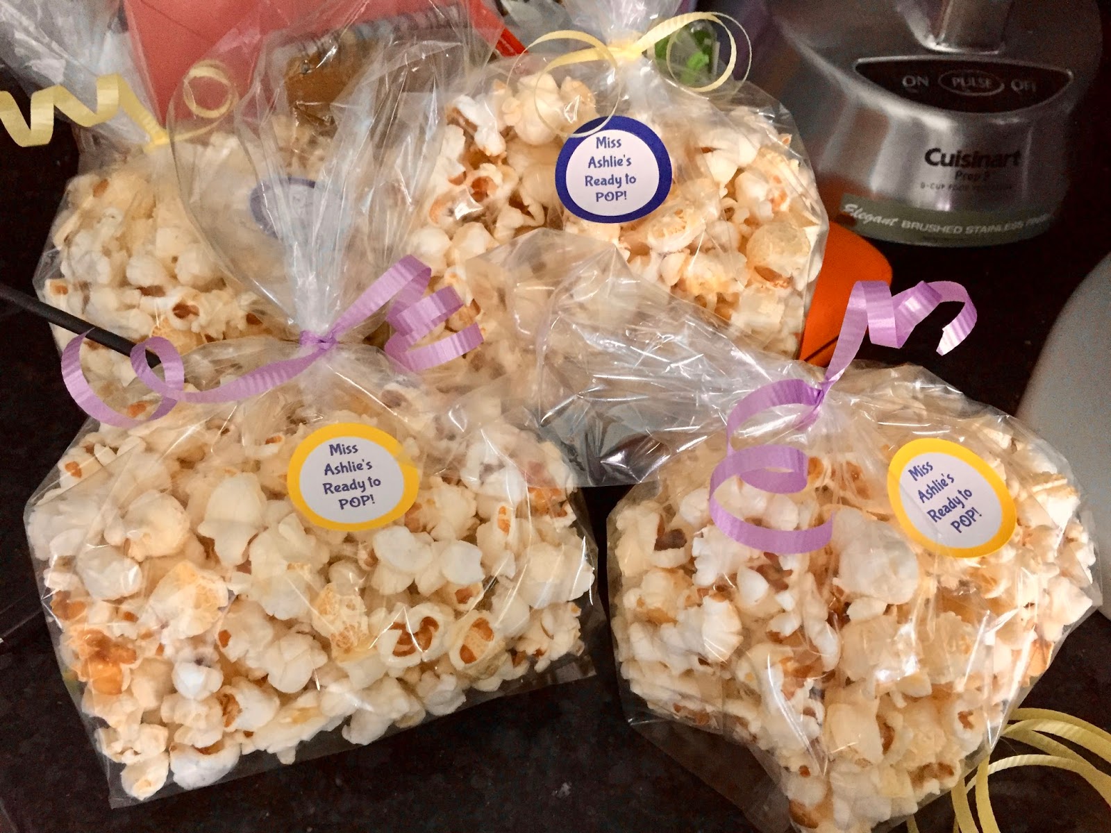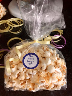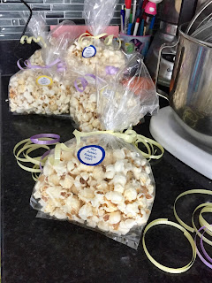 After the swim meet Ninja and I made 30 bags of popcorn for a baby shower that I was invited to. The bags turned out pretty cute if I do say so myself 😊.
