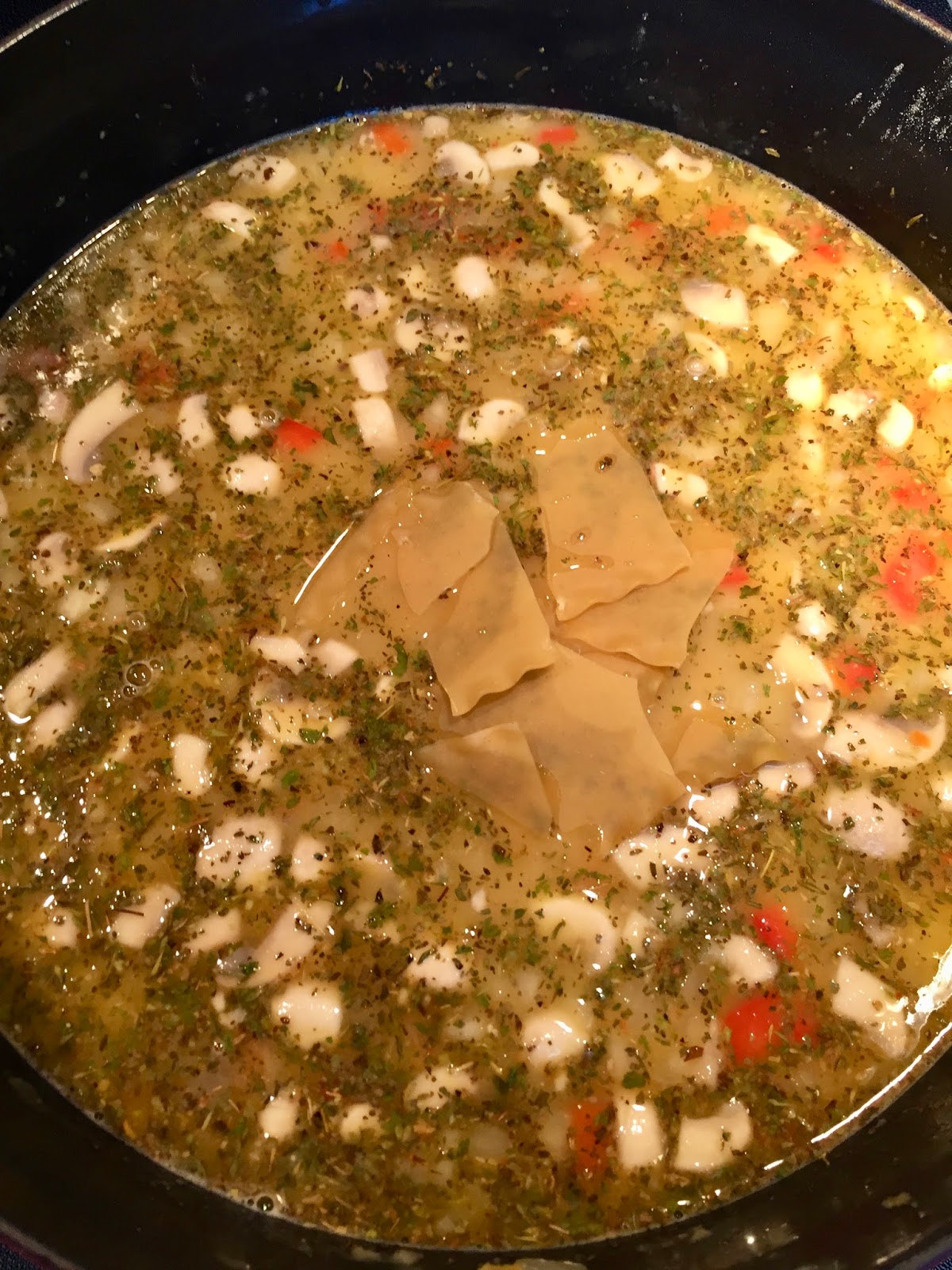 Bring to a boil then reduce to a simmer until lasagna noodles are tender, stirring occasionally so noodles don’t stick to bottom (approximately 20-30 minutes).