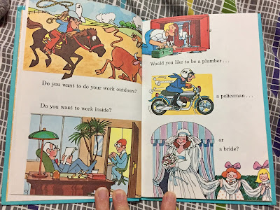 I loved that book as a kid. I bought that book for HBear and we used to read it all the time. She would go through it and say yes or no to whether she wanted to be that when she grew up. Actually, I’m pretty sure if I looked back a couple years I have a post about this exact conversation LOL. The conversation was and still is about, maybe you should be a bride.
