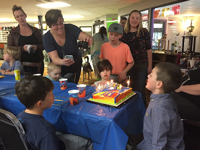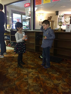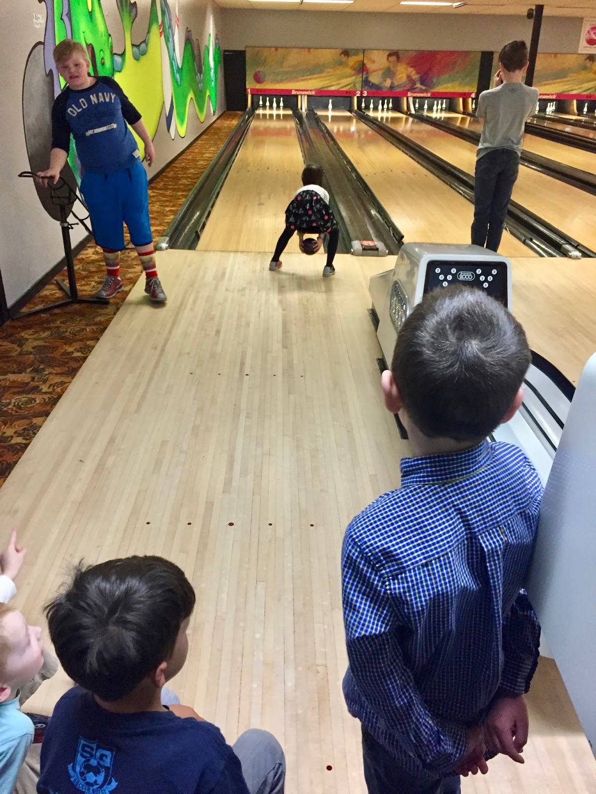 On Sunday he had his birthday party at the bowling alley. She had a fabulous time. I was worried a little bit about her being the only girl but she fit right in!