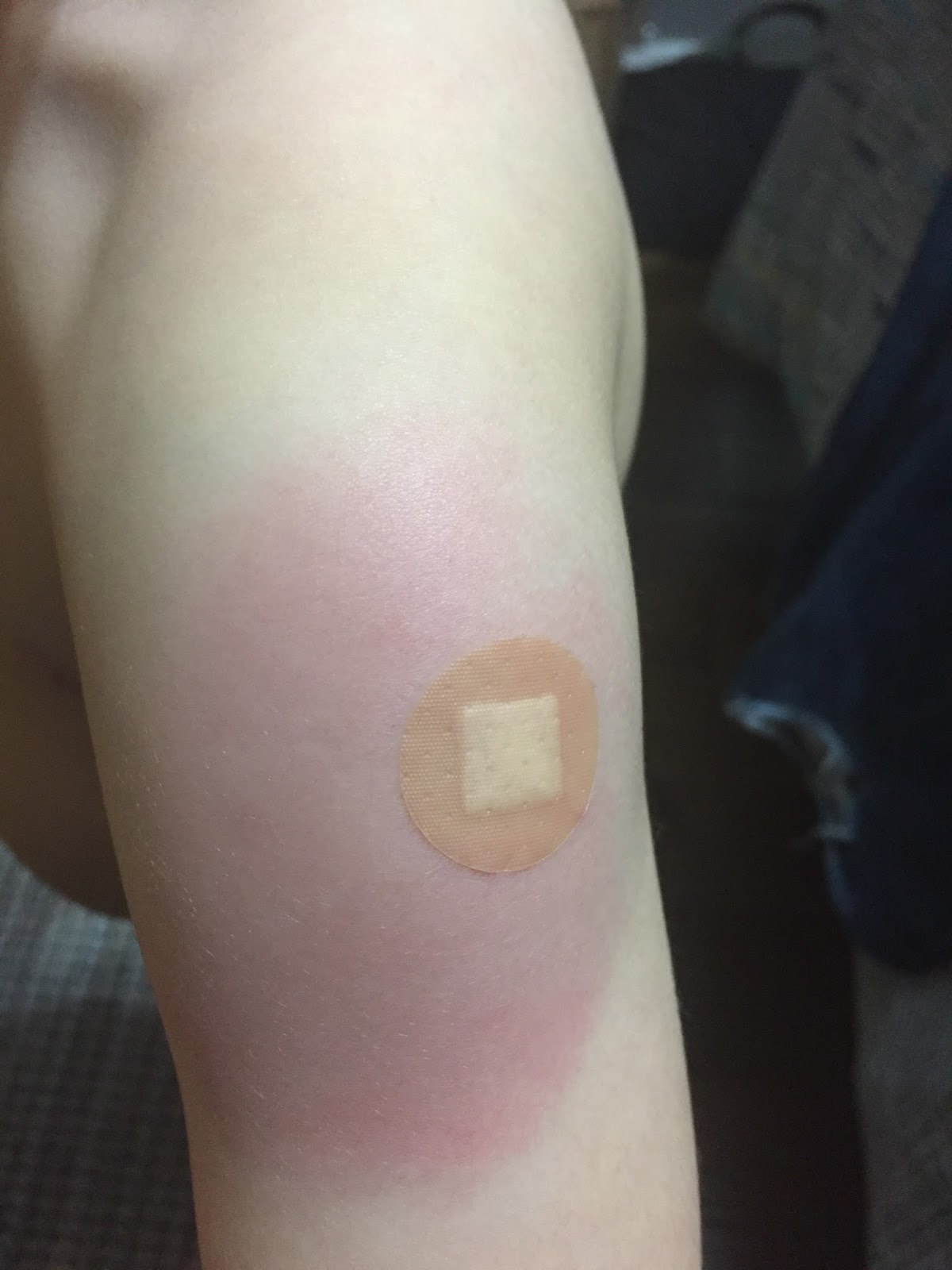 Of course the next day we noticed she in fact did have a reaction. I called the public health nurse and apparently everything was normal. Today it looks fine but on Saturday I was a little bit worried…