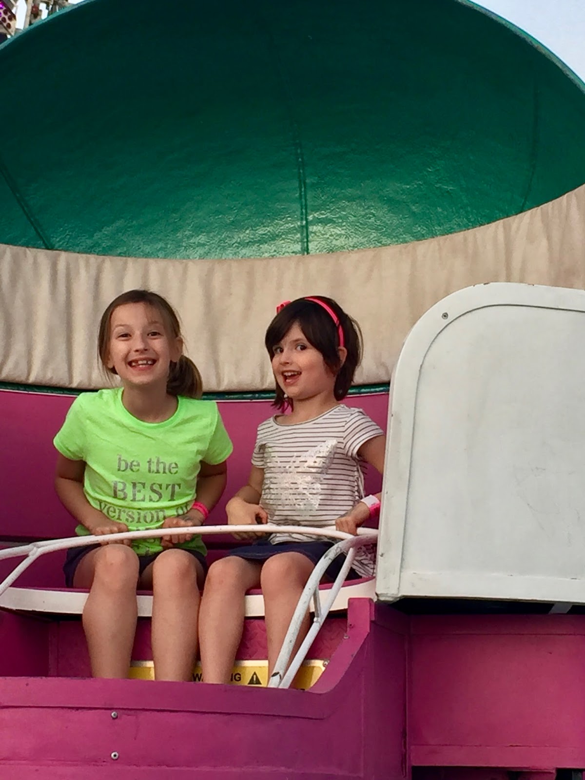 After “dinner” we headed over to the travelling Carnival. Last week while we were geocaching, we saw the rides rolling into town. Every day SBean begged me to drive her by the fair grounds before school 😂. The Girls were so so so excited!!! Ninja got a wristband too because HBear likes the big girl rides now. He was turning green 😂 buffet, age and carnival don’t mix!