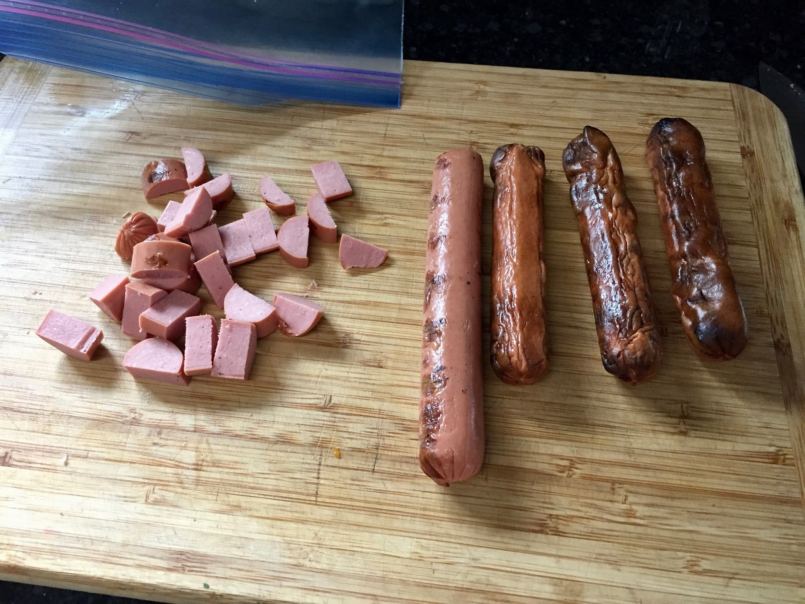 6 hotdogs, cooked and chopped