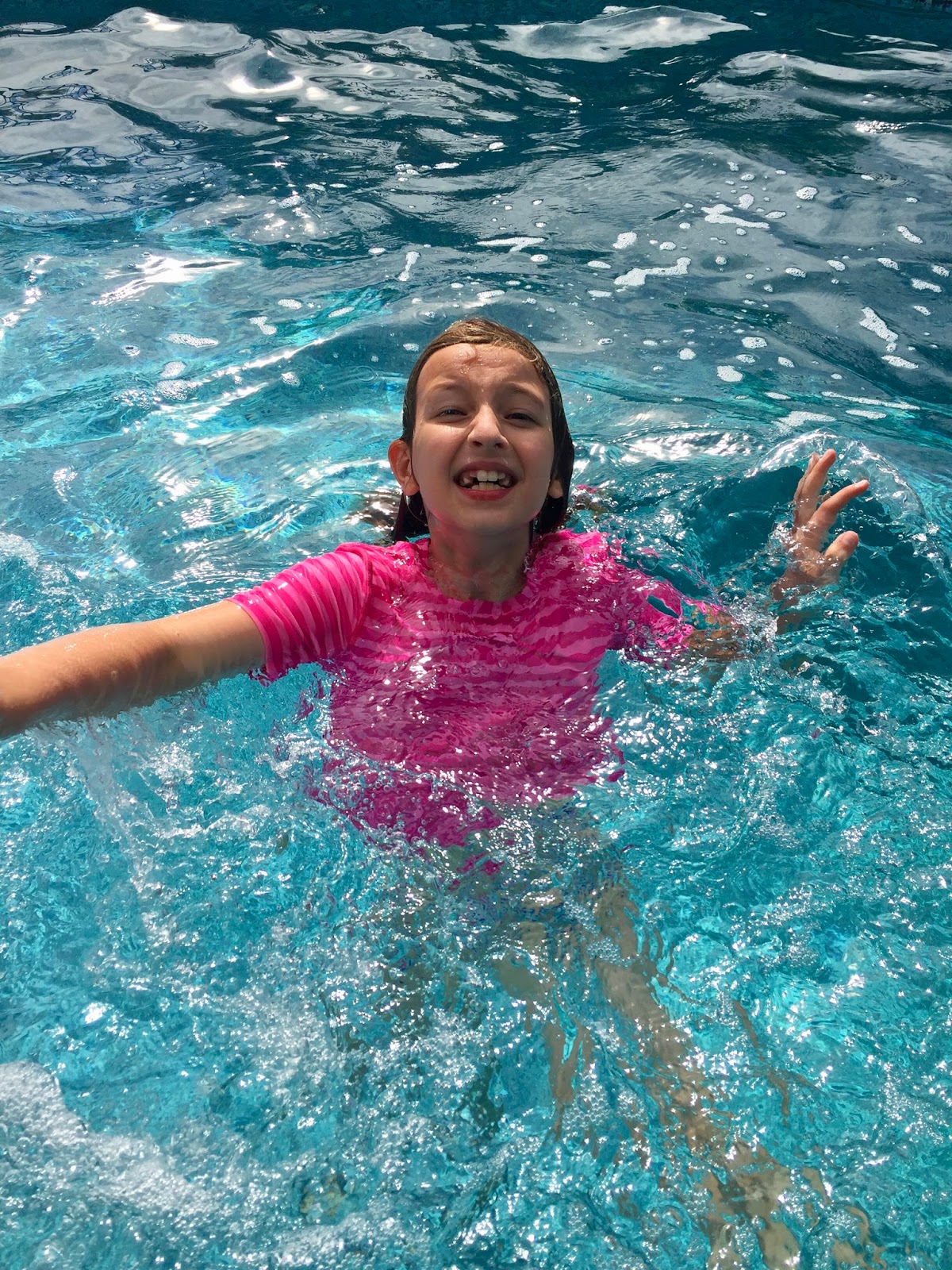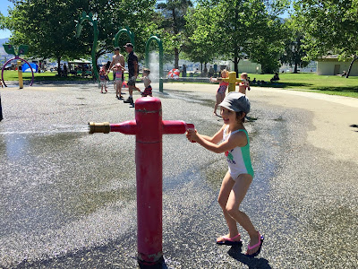 She stood up nice and straight and went running full force back into the spray pad 😀.