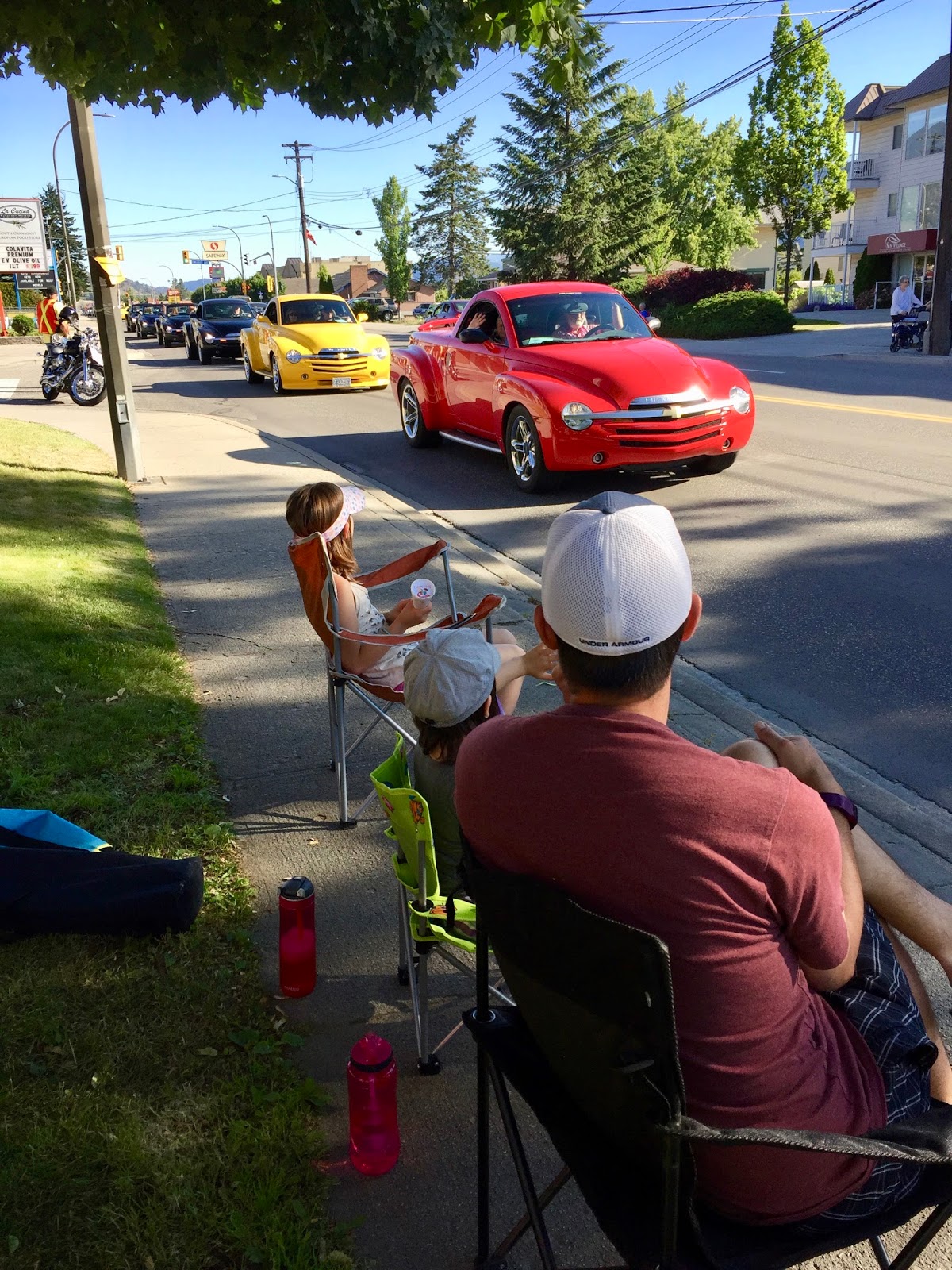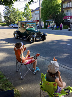 On Friday it was the first day of the Peach City Beach Cruise. It is the first “festival” of the year for our resort city. After dinner we all walked to the end of the street and sat and watched all the classic cars drive-by in the parade.