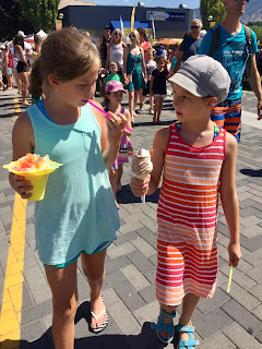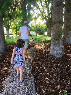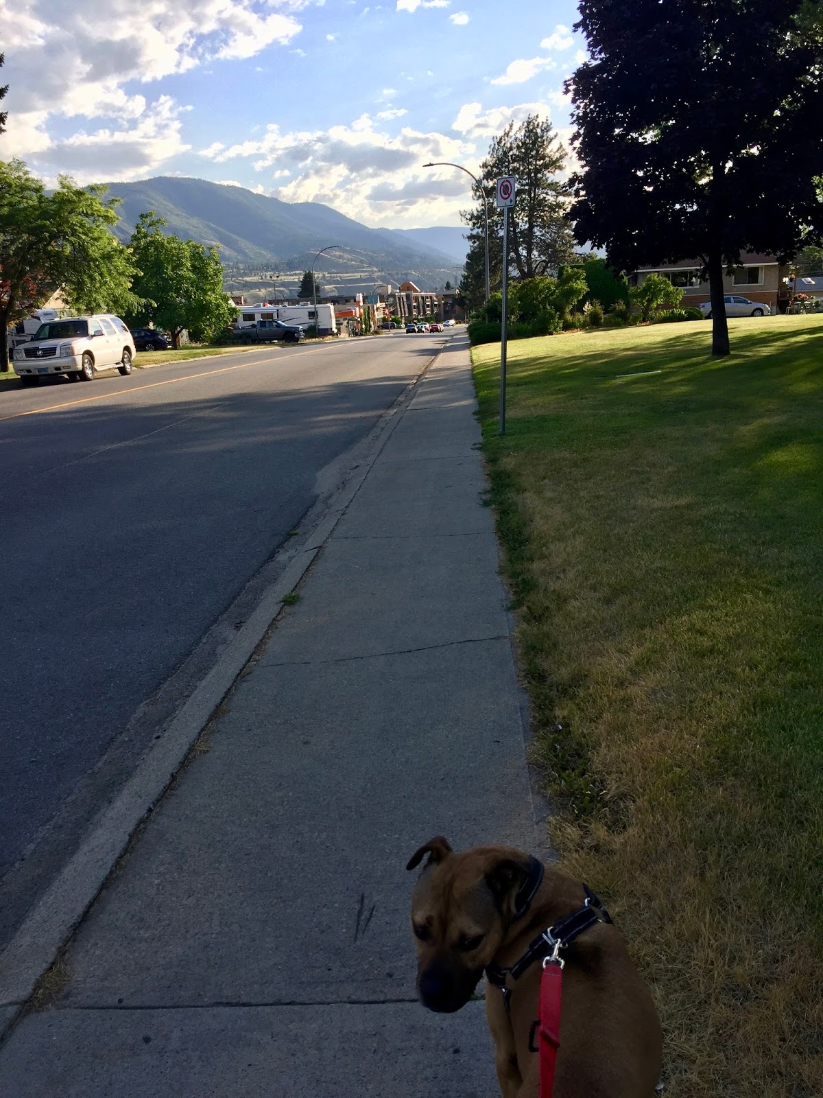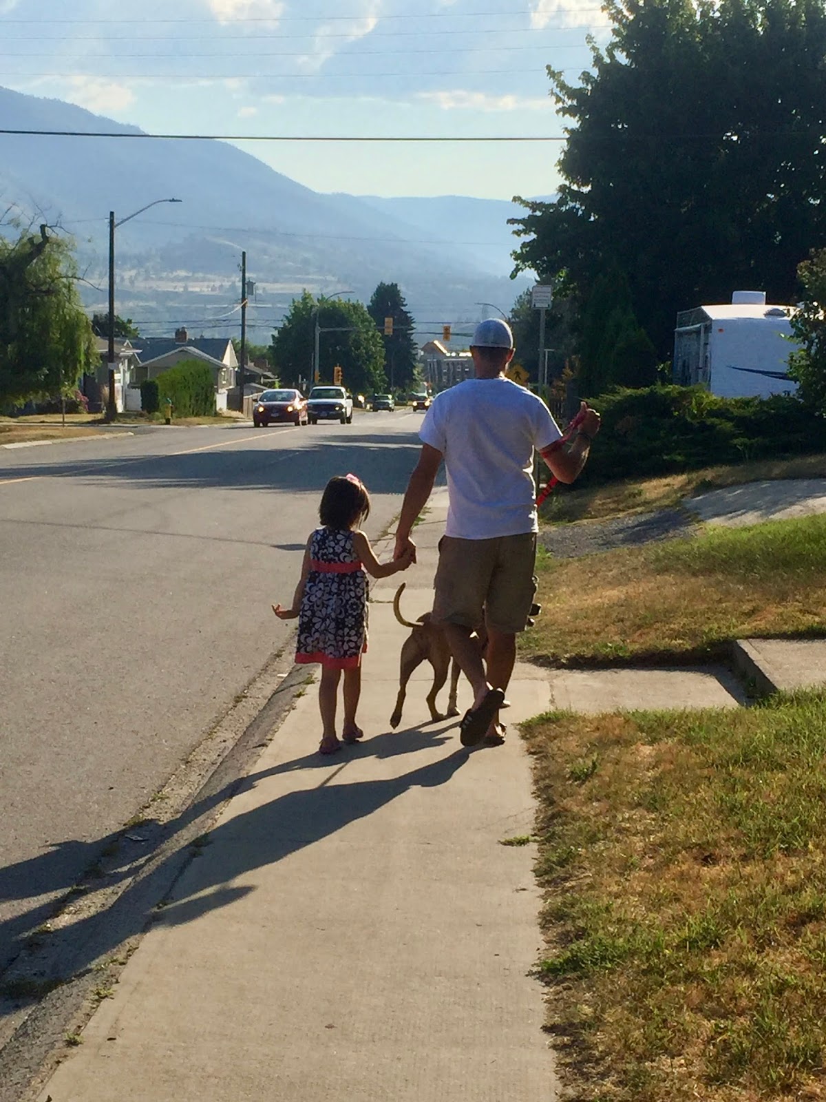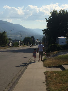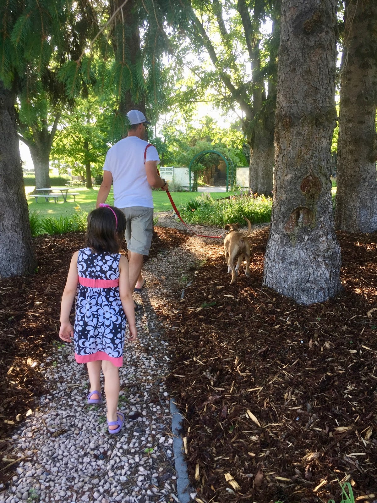 We have been watching my Sis’s dog and he has been great! I have enjoyed our evening walks and so has SBean! One evening HBear went out for dinner with Auntie and JQ and we had SBean all to ourselves! I love when we get one on one time with each of the Girls. It gives us a chance to get to know them so much better! We had dinner outside, a dip in the hot tub, and then we took Lenny for a walk. As we began walking SBean was giddy and she looked up and said, “this is my first time taking a dog for a walk. Ever.” She had a great time 😁. It was quite hot however and by the time we got around the block and to The Leir House she was pooped!