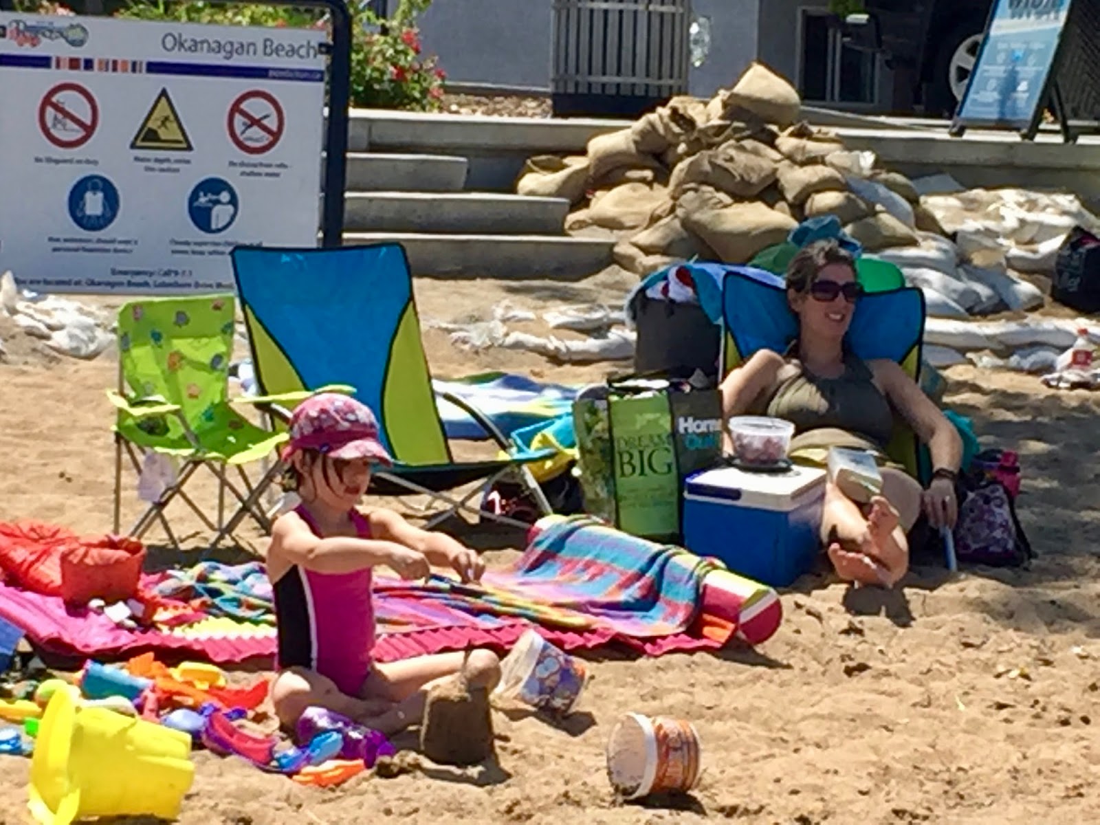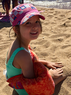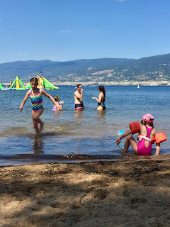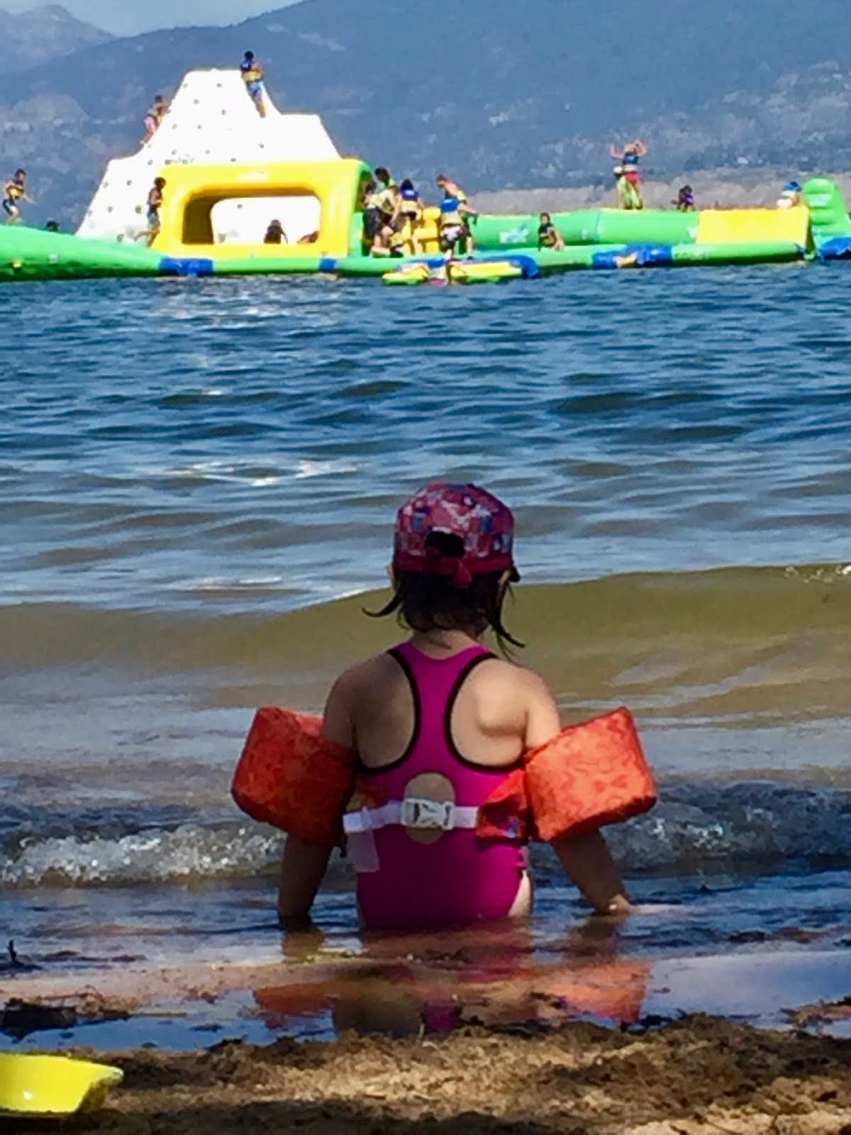 After a lovely morning stroll, ice cream and snowcones, and 1 or 2 wine samples LOL we settled in at the beach. HBear and her GR2Besty spent the entire day on the Wibit while Ninja and SBean happily played in the surf and I actually read a few pages of my book! A little while later my in-laws, SIL and JQ met us for a little beach fun.