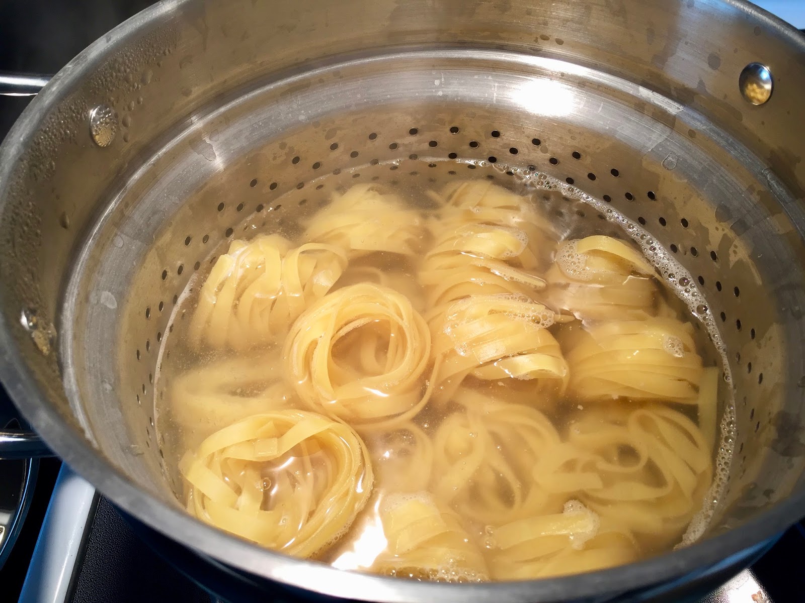 Meanwhile, cook the pasta in the corn water as per the directions on the box.