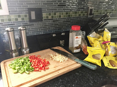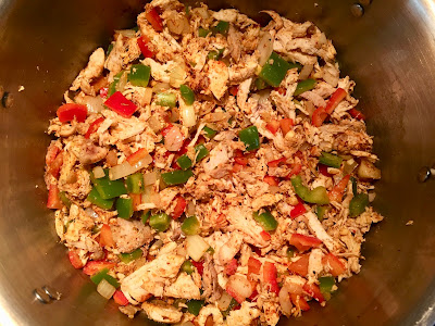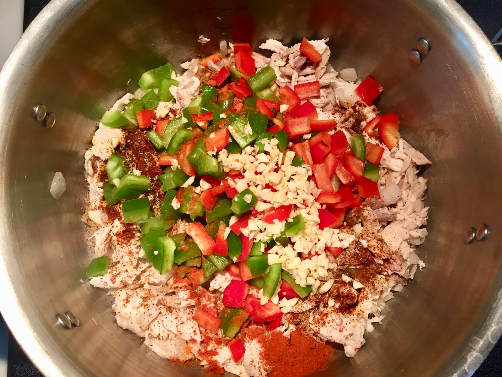Add bell peppers, garlic, and all seasonings/spices. Cook, stirring constantly, for 2 minutes.