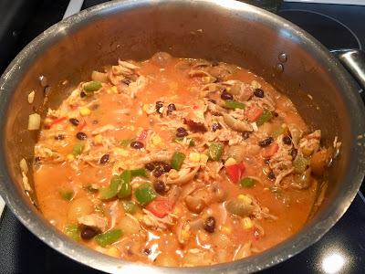 Stir in black beans, corn, salsa, enchilada sauce, milk and pasta.