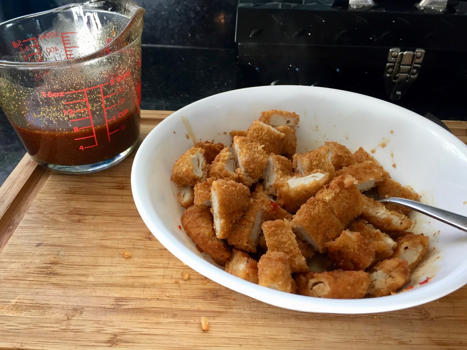 Chicken: Prepare chicken according to directions. Chop chicken. Toss in Teriyaki Sauce.