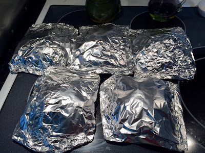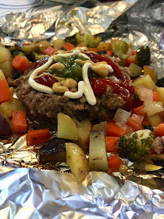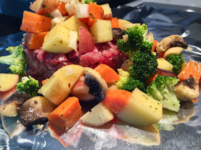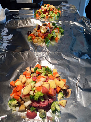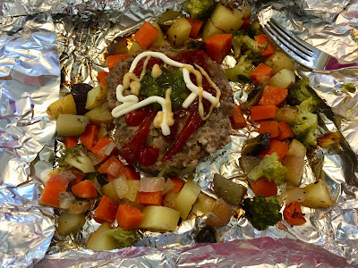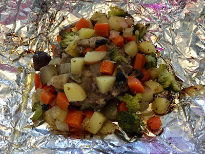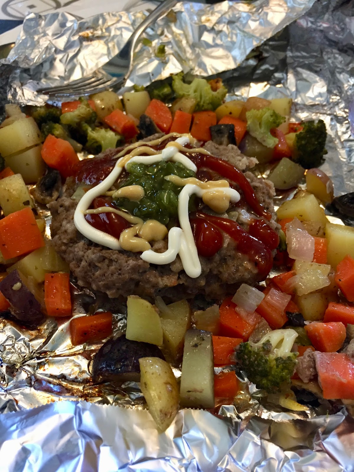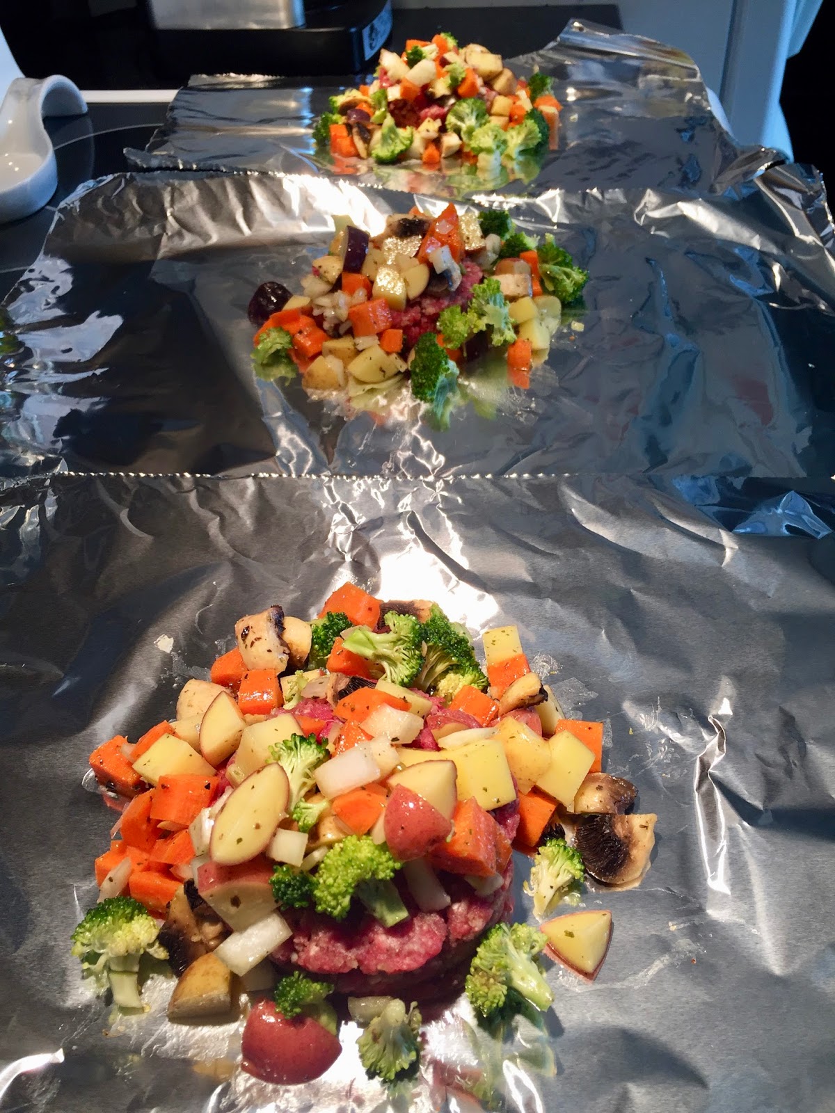 Fold the sides of the foil up over the hamburger and veggies to seal and form a packet.