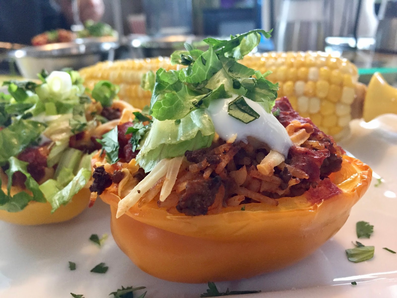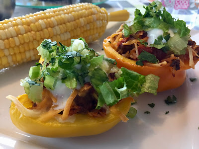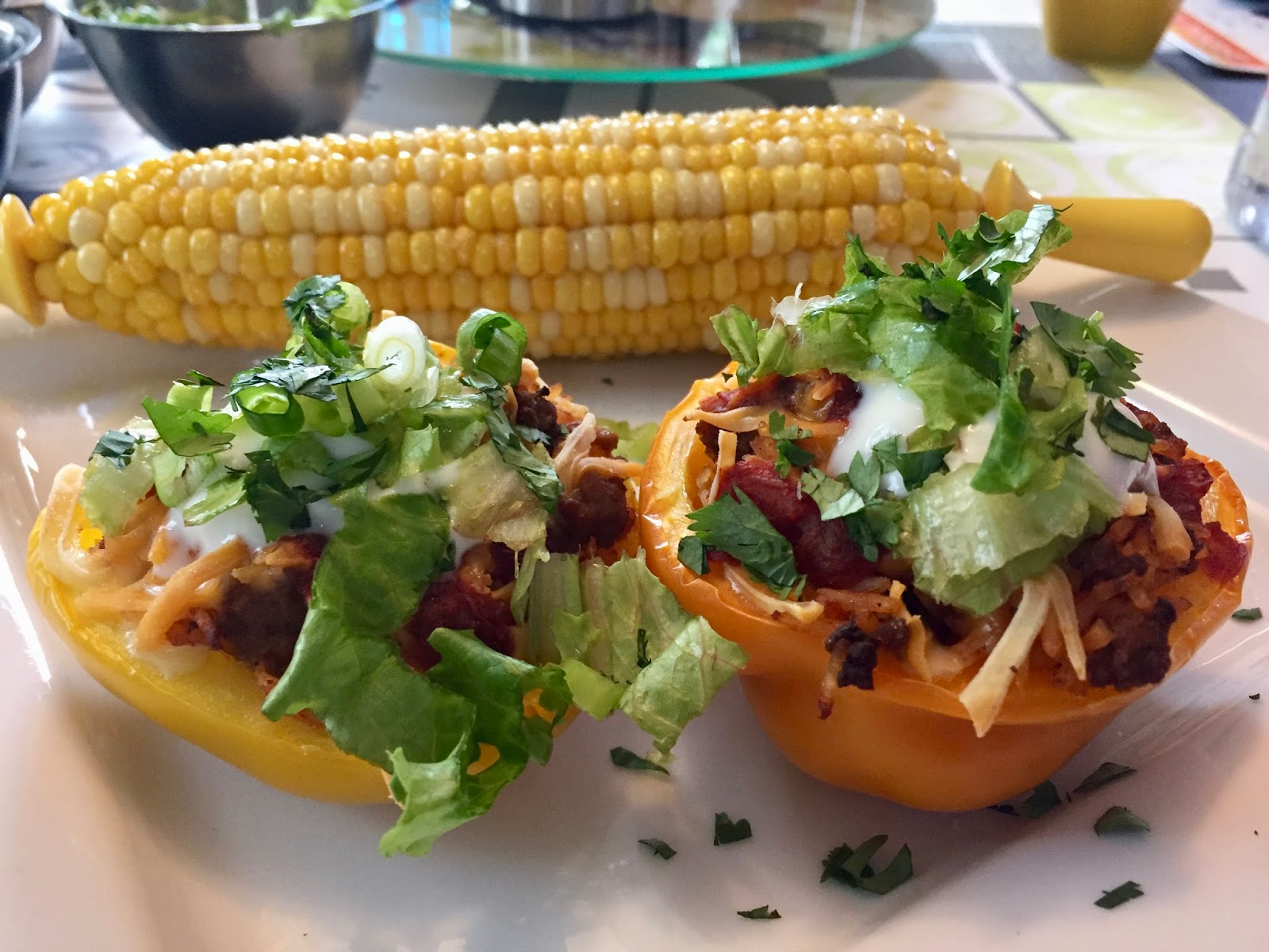 Serving size: 1 full stuffed pepper and 1 cob of corn (not including toppings)