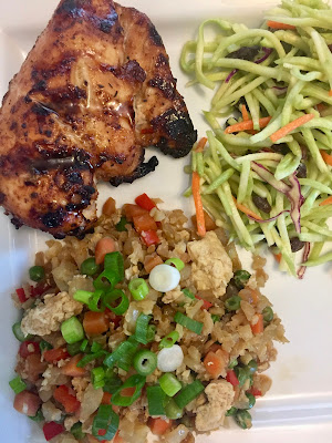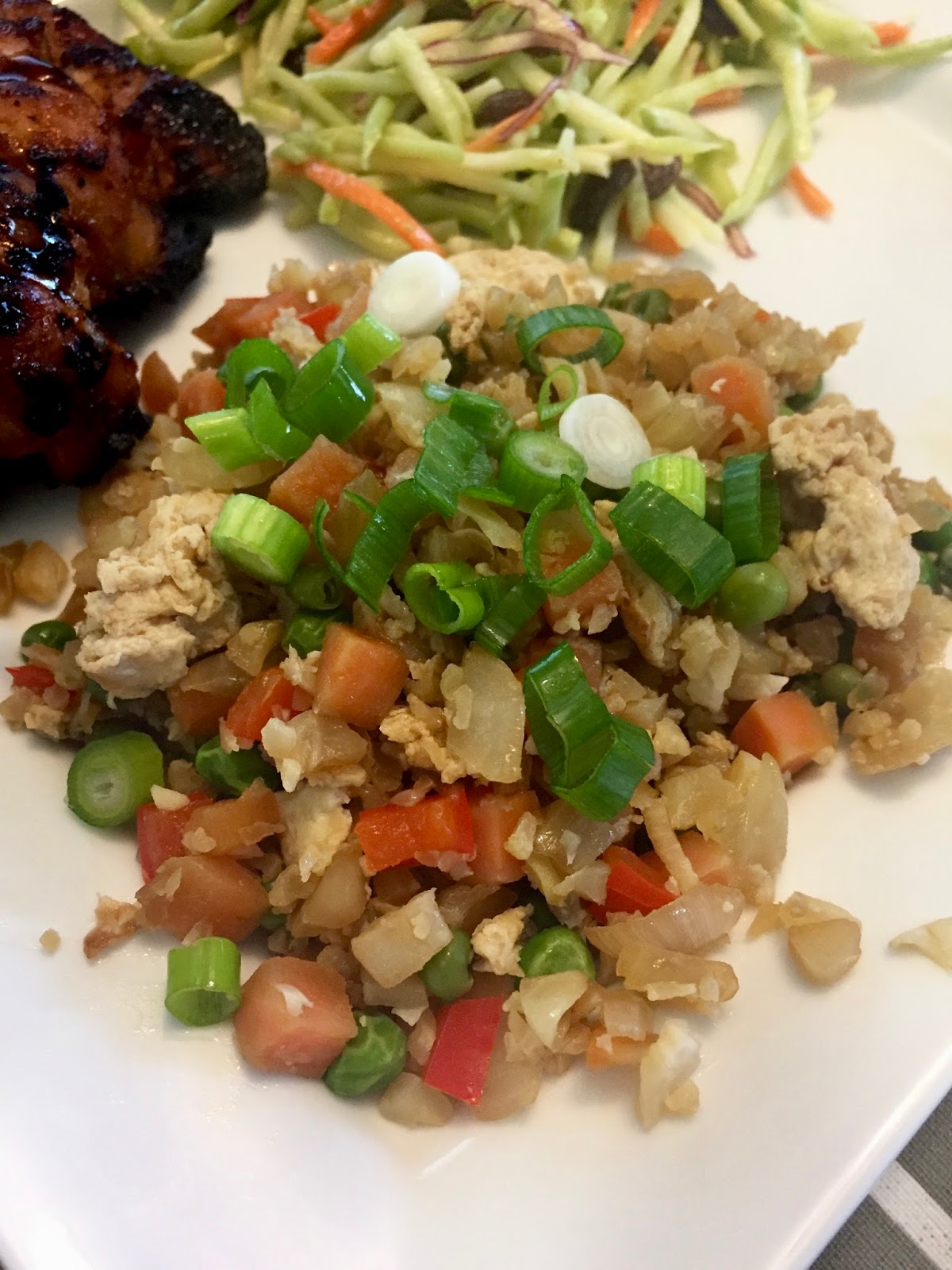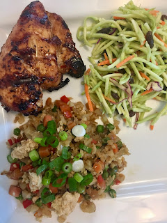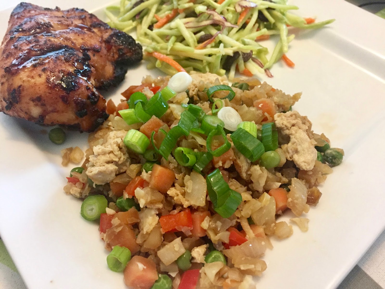 Grilled Chicken Breast, Cauliflower “Fried Rice” and Coleslaw