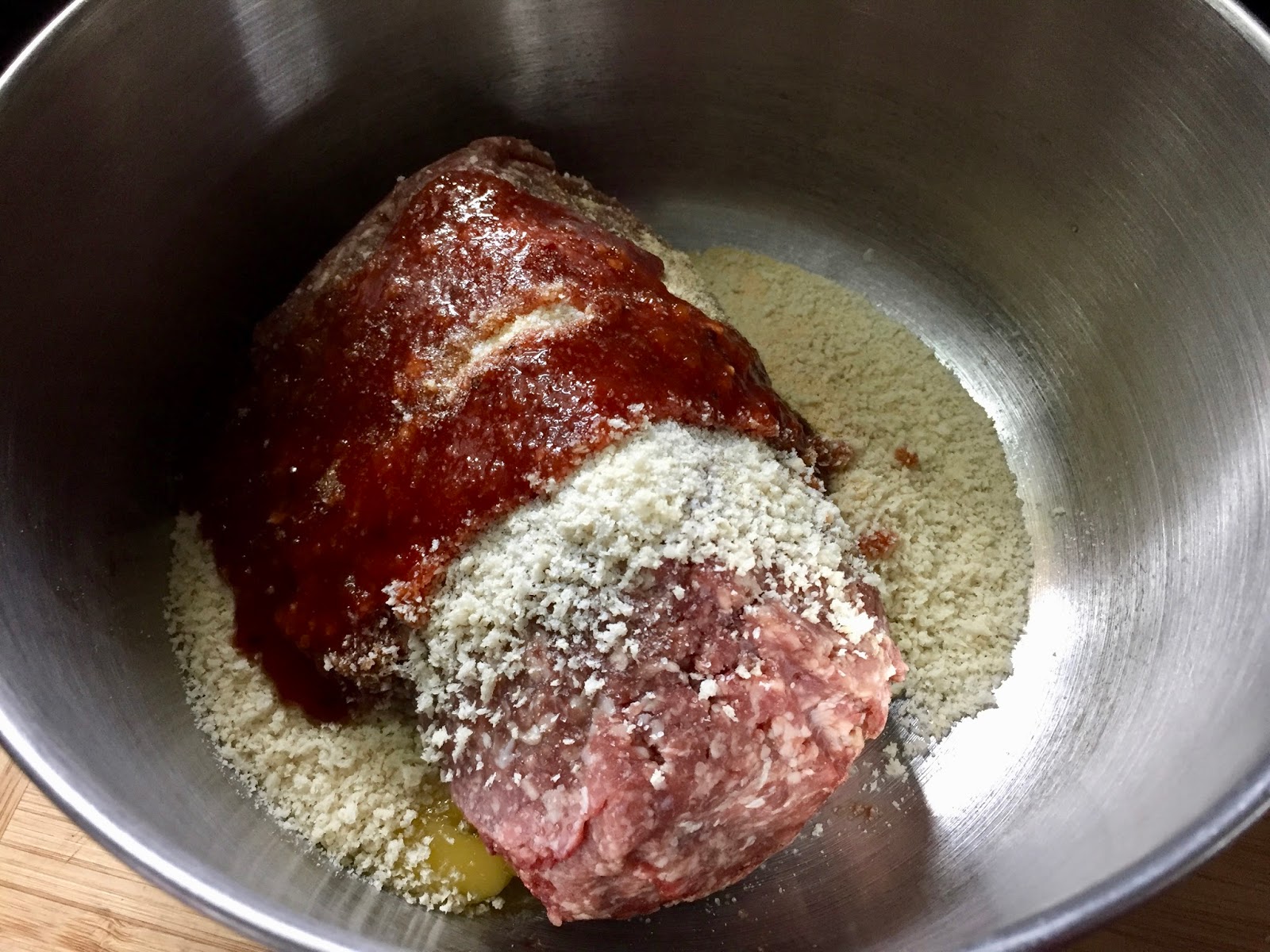 Combine ground beef, egg, bread crumbs, barbecue sauce, and garlic powder in a bowl and season with salt and pepper.