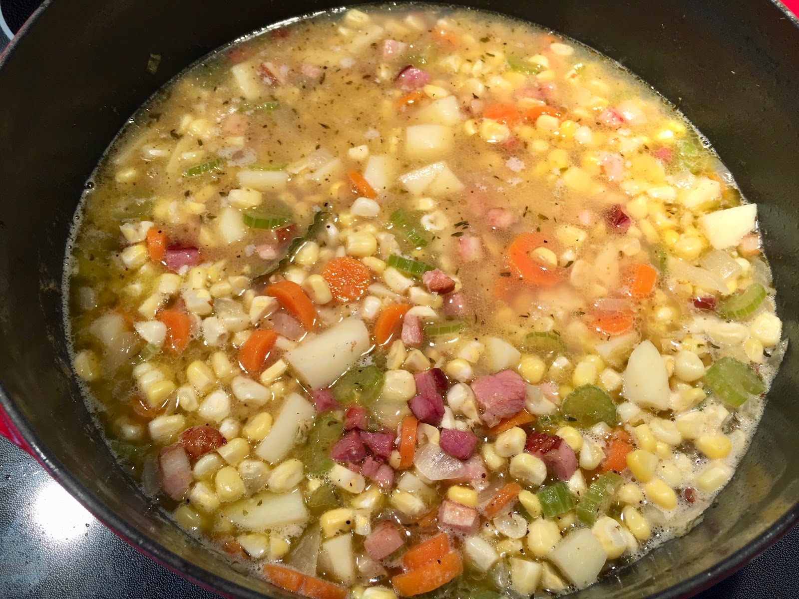 Add corn; season with salt and pepper, to taste, and simmer for additional 8-12 minutes.