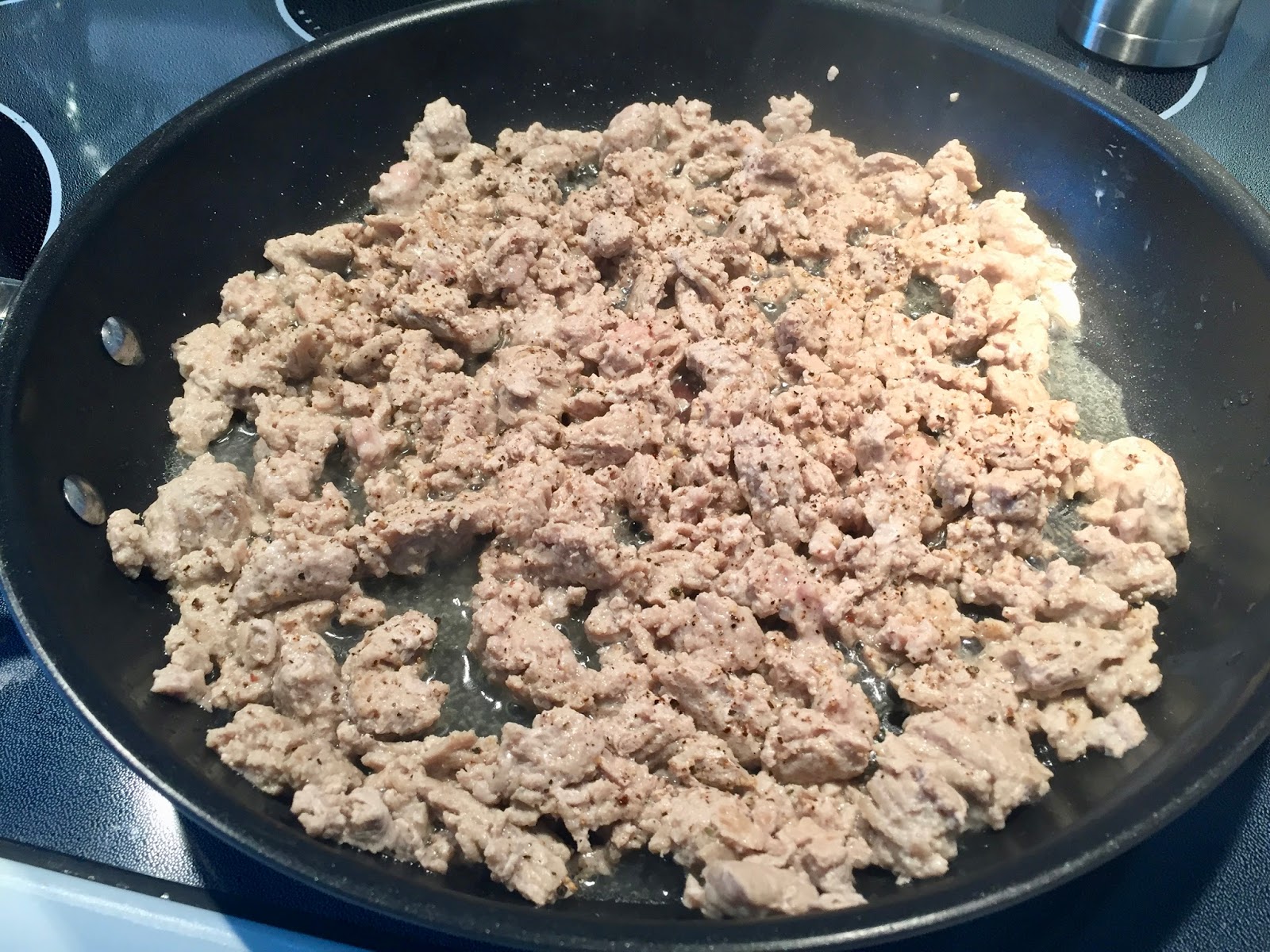 Heat 1 tablespoon oil in a large pan. Add in the ground turkey and break it apart. Season with salt and pepper to taste and cook till no longer pink. Set aside on a separate plate.