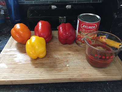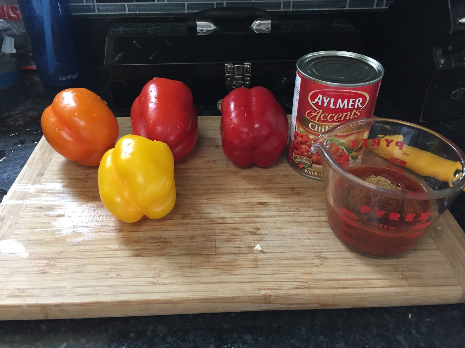Preheat oven to 375. Wash and seed bell peppers and cut in half from top to bottom. Place in a greased baking dish and set aside.