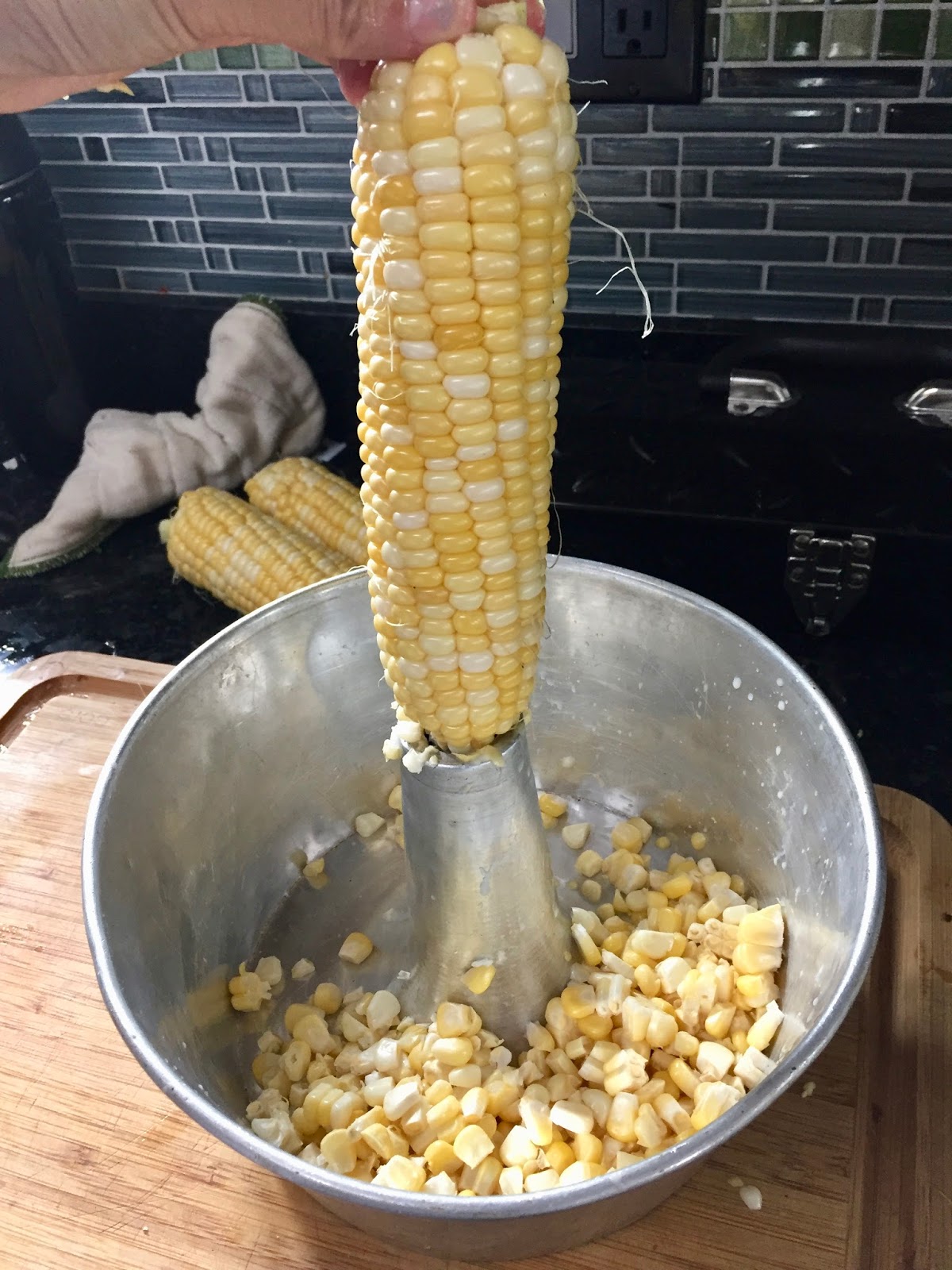 4 ears of corn, husk + silk removed and kernels cut from cob