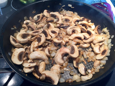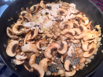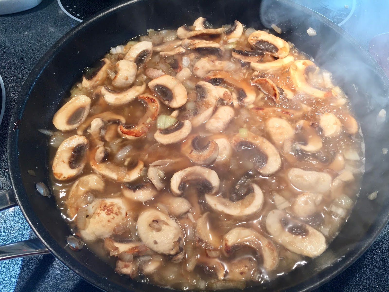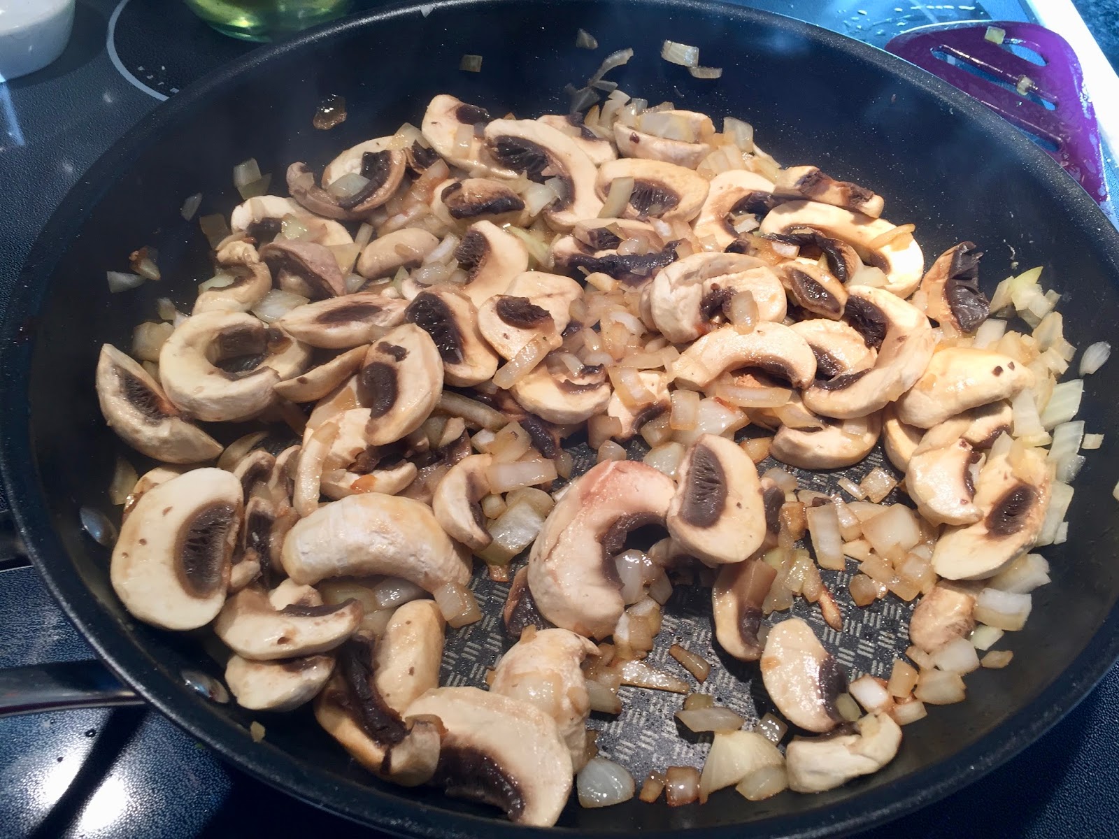 Add the mushrooms, onions and wine to the skillet and cook for 8-10 minutes, until the liquid has evaporated and the mushrooms are browned, stirring occasionally.