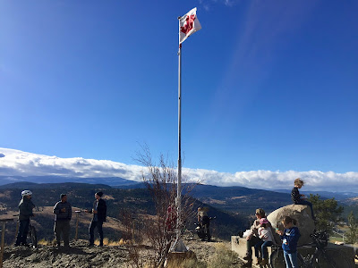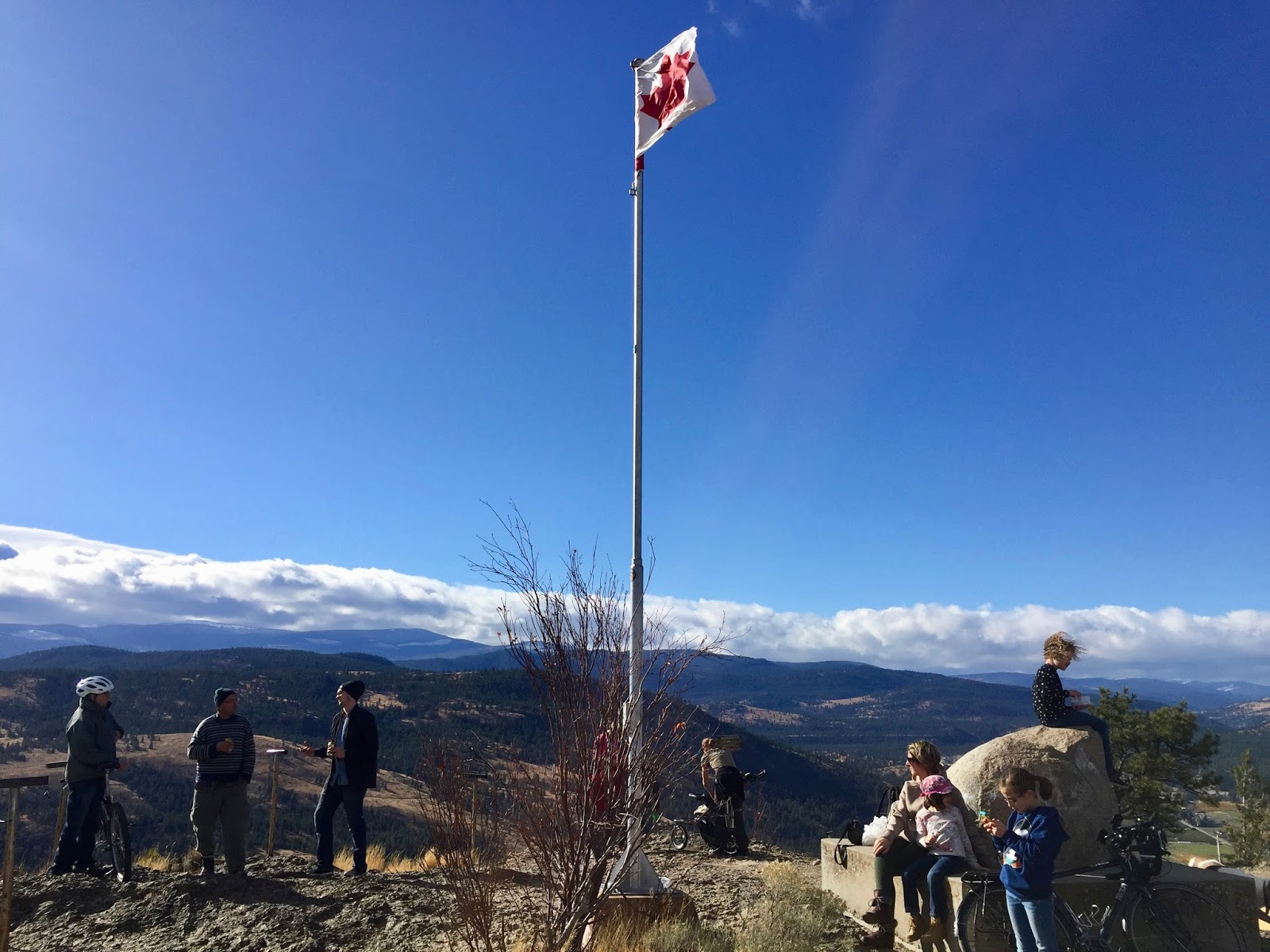 This past weekend we climbed Giants Head mountain. We climbed 1.6 KM to the summit (about 1050 ft). When we got to to top I saw the maple leaf blowing in the wind against a brilliant blue sky. As I walked closer I heard it. Gord Downey’s voice rang out clear. On top of a mountain looking down on the beauty of the valley the sound of The Tragically Hip was absolutely the most perfect feeling of… home. We also saw what will probably be the last yellow butterfly of the year 💛.