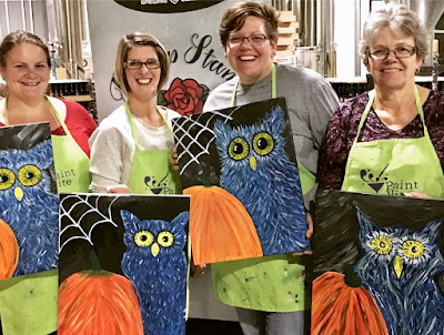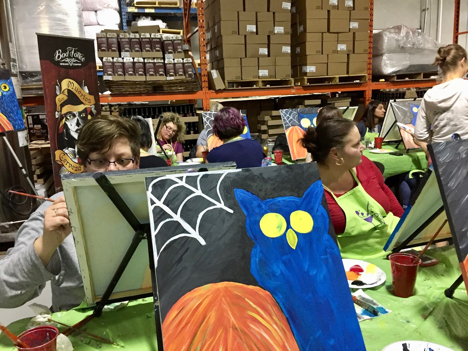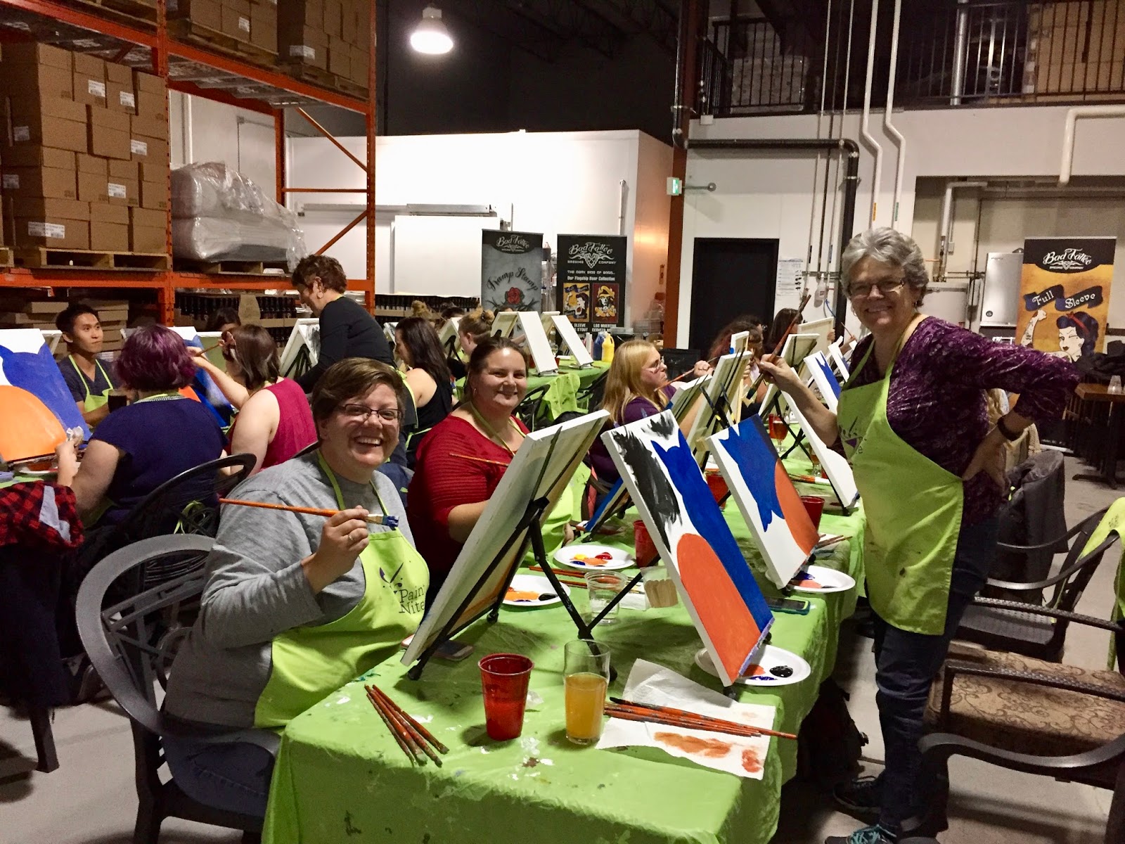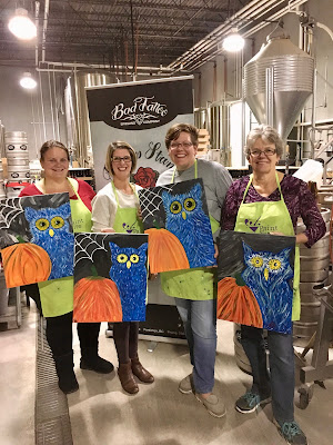 This week I went to PaintNite with LBesty, YBesty and NewA. It was held in the back brewing area of Bad Tattoo. I am certainly no artist but it was so much fun!