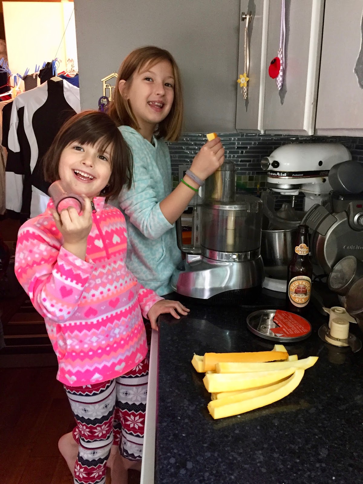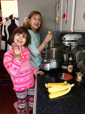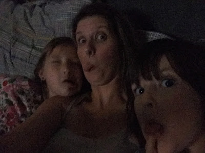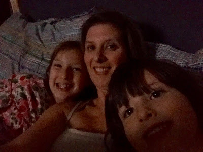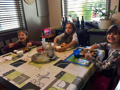 After the Girls had their French Toast, whipped cream and berry dinners the last friend was picked up and we got into our cozies to watch Hocus Pocus in Mommy & Daddy’s bed!