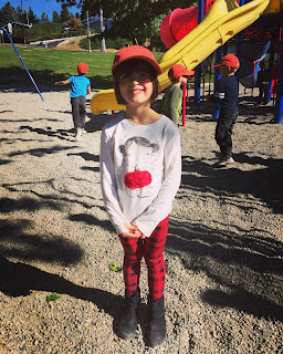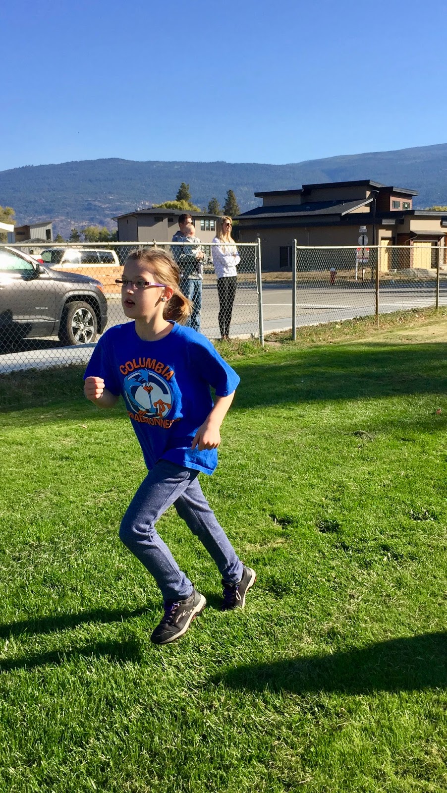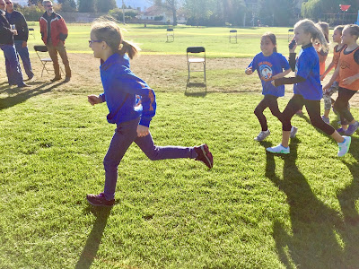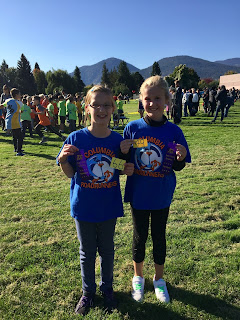 Now that HBear is in gr.4, she is an intermediate student and is involved with many new activities. Last year they got to do 2 cross country runs to get used to it and now they do them more regularly. Her 1st one was this week and she was hoping to beat her last placing and come in 62 this time lol. She came in 66th but she tried and she finished with a smile so I call that a success!