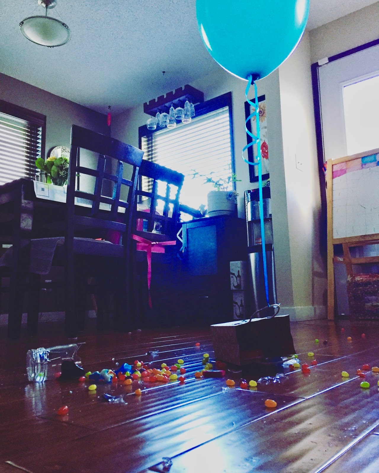 The next morning was a disaster and HBear’s goody bag was knocked over and the beautiful mason jar filled with jelly beans broke every where. There was also a ton of popcorn in my bed. So, I ended up cleaning and laundering everything the kids had touched 😂. When we got home from Thanksgiving dinner we found 2 new mason jars filled with jellybeans 💛!