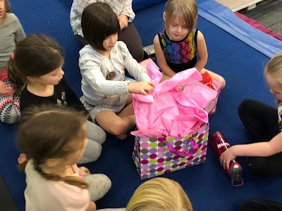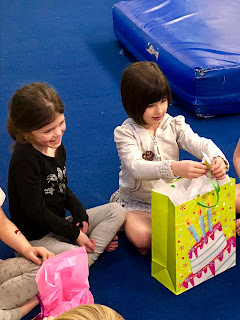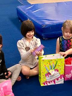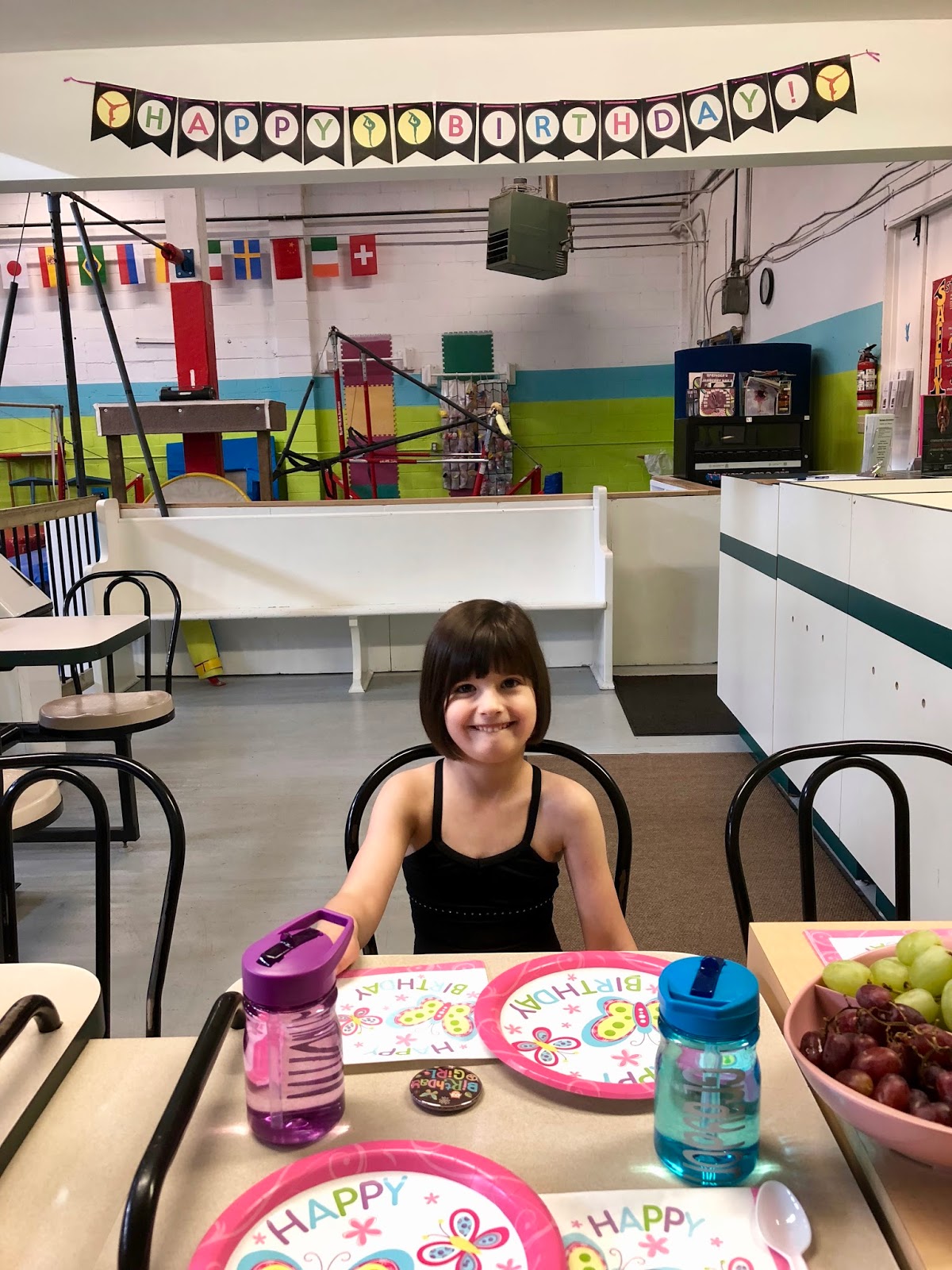 As I have told you in a previous post, this year SBean decided to have a gymnastics birthday party! I love this because the kids sleep so well that night LOL and there is basically no mess to clean up!