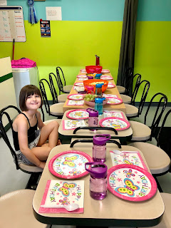 SBean was very specific in what she wanted. Pink plates, ice cream cake with lots of pink whips, and personalized water bottles for each of the kids as a thank you gift. Thank goodness MBesty has Beyond The Stitch for all of my personalized gift needs!