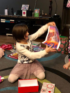 On her actual birthday she chose dinner and of course she chose waffles! We decided to have our family birthday dinner for both girls together this year. I hate doing that because they are such individuals and I like having their birthdays on separate weekends to make sure they get our full attention. However, this weekend coming up has a lot of things planned and I didn’t want HBear to miss out on her family dinner/birthday cake experience. So, I bought 2 separate cakes with 2 separate coloured candle sets and we sang happy birthday to both of them. Then, SBean opened up her presents from the family.