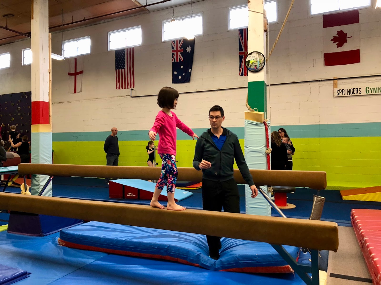 On Sunday it was still raining and Papa was off to Mexico for his annual vacation, so we went to the Family Drop In Gymnastics at Springers! So much fun!