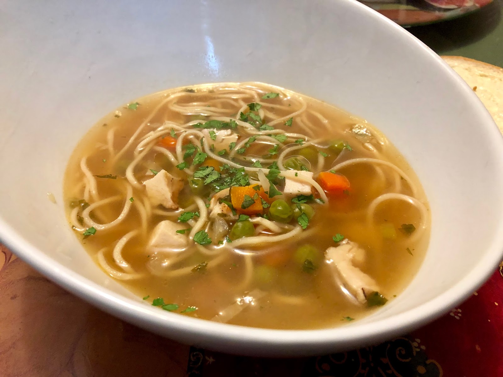 Stir in sugar and slaw (I totally forgot the slaw 😂) and return soup to a boil. Add noodles and cook 3 minutes, until noodles are tender. Sprinkle with cilantro and serve.