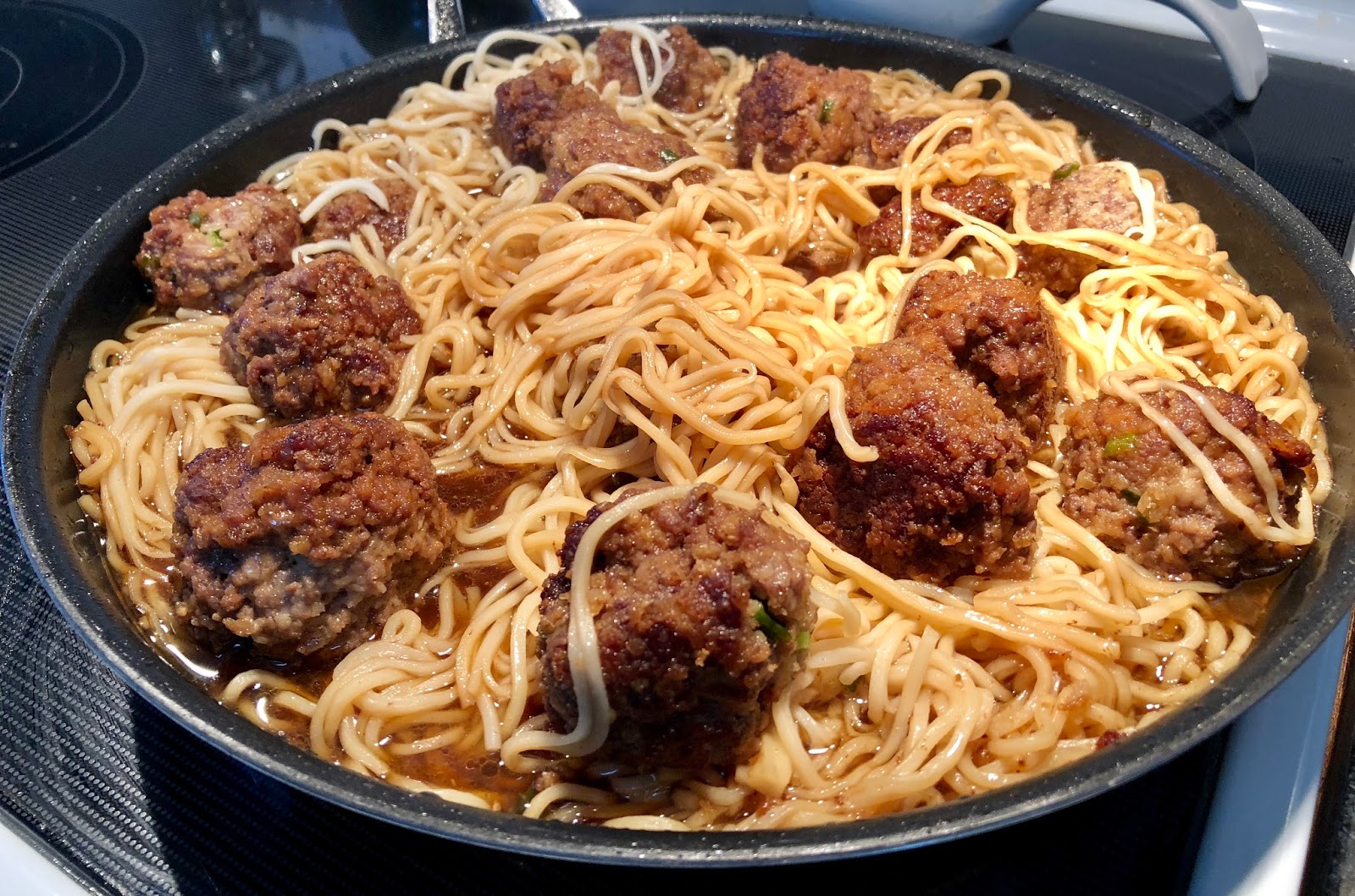 Instant Egg Noodles and Meatballs