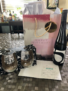 As I said last week, I had a very great birthday! On my actual birthday I got even more spoiled! I was surprised by Gr2Besty with a fabulous bottle of wine with glasses,  SweetPea drew me a picture and my Sis got me a fanny pack!