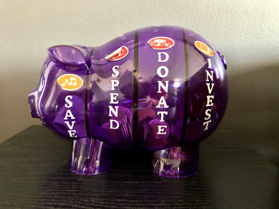 So how are we doing this? Well, when HBear turned 6 we took her in to the bank. SBean will do the same. We saw a financial advisor and she discussed all the options with HBear and with our help she made her own financial decisions, like starting a savings account. We also gave her a super cool piggy bank for her 6th birthday. There are different slots in this piggy bank, 1 for savings, 1 for spending, 1 for investment, and 1 for charity.