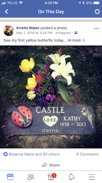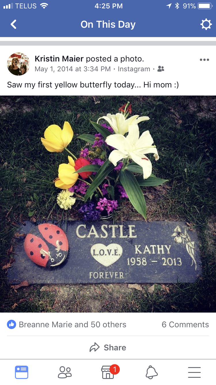 It’s so weird… Grief. In some ways I hate the reminders and in other ways I welcome them. In some ways I don’t care because at least I get to see her, like it makes me closer to her to relive the memories. Sometimes I can’t remember specific things at all. But in May… I remember everything. In some ways I hate it! I want to delete my Facebook account and put my fist through my computer screen but then I wouldn’t have these memories and that makes me cry even harder.