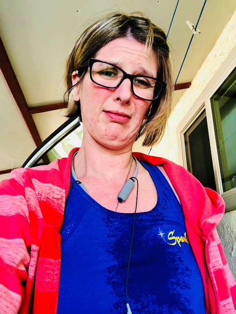 On Wednesday my wireless earphones died while I was working! Thank goodness I have a wicked Sister that bought me a super cool Fannypack to hold my phone just in case I screw up and forget to charge my earphones 😜.