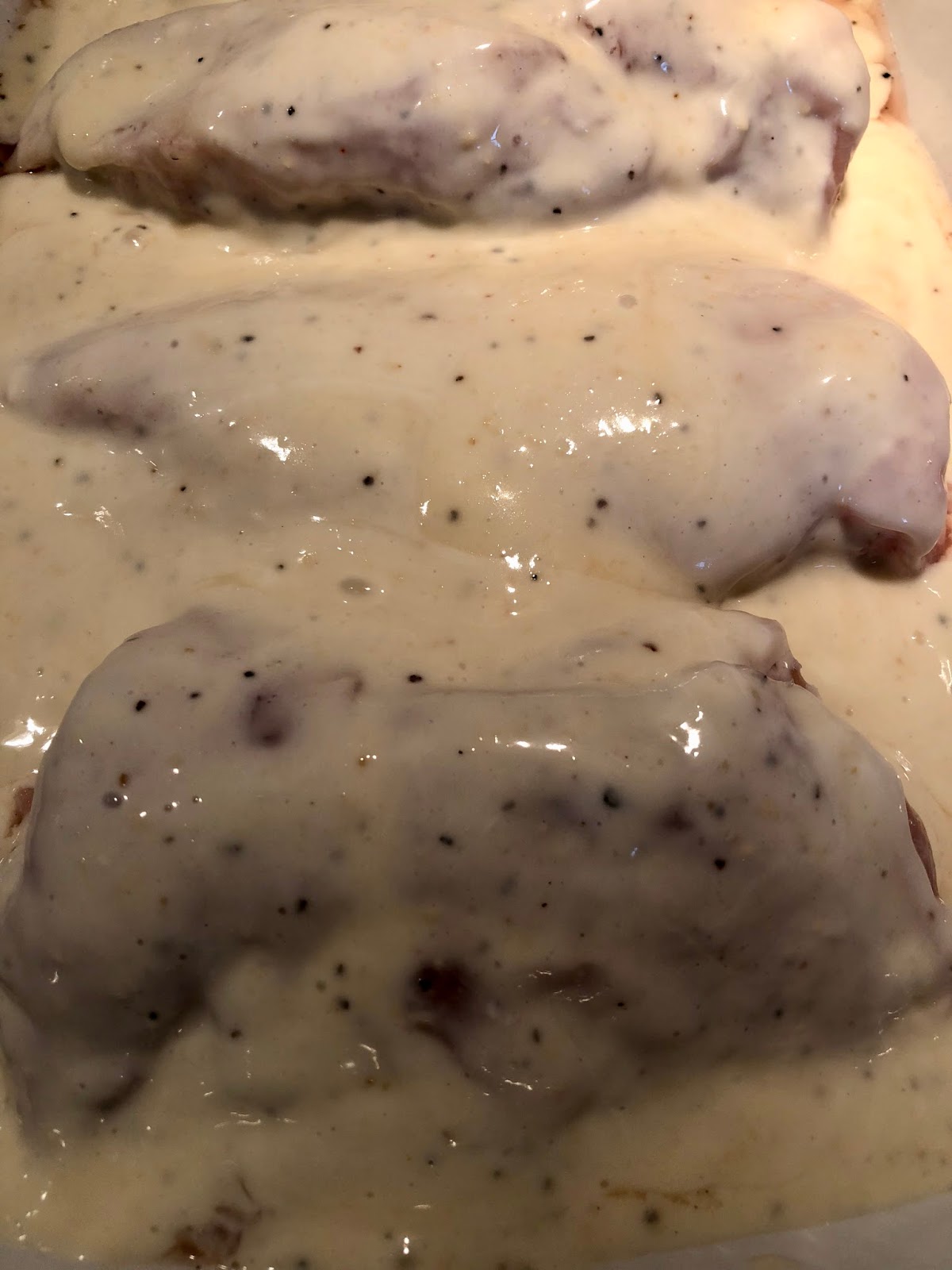 Place chicken in a baking dish. Pour the dressing mixture on top of each chicken piece.